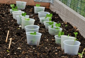 I had just come home from work at around 9:00 p.m. The weather advisory freaked me out…. frost warning! Shouldn’t I be freaked? It was 60 or 70 degree during the day a few days ago and night time temperatures have been in the upper 40’s. I had put some of the seedlings in the ground, the ones that are hardy enough to deal with 40 degrees at night. Some of them are even happy with a little cold like the little Sugarsnap peas. They were fine until tonight.