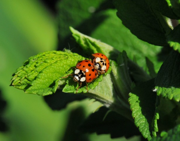 The Ladybugs showed up a couple of weeks ago despite the uneven weather.  They work hard on checking the top and bottom of rose leaves for Aphids. Even while mating, she still keeps working.  Her ability is really admirable.  I didn’t want to bother them.  I need to enlist their babies (larva) as well. If you see something that looks like it just chased Sigourney Weaver around in a movie wearing black with yellow or orange stripes, don’t squash it.  You don’t want to kill your ally.