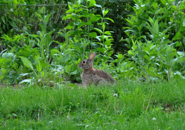 I had rabbits as pets when I was a kid. We kept them in a pen all the time since we didn’t want them to be mauled by our dogs. One day one of the rabbits dug out from under the pen and committed suicide by jumping in the pond. I’m joking. He thought the duckweed that covered the pond’s surface was turf grass, so he jumped in. We helped him out but he died a few days later. Once the other two rabbits died, that was the end of rabbits as pets. Until I planted a garden….