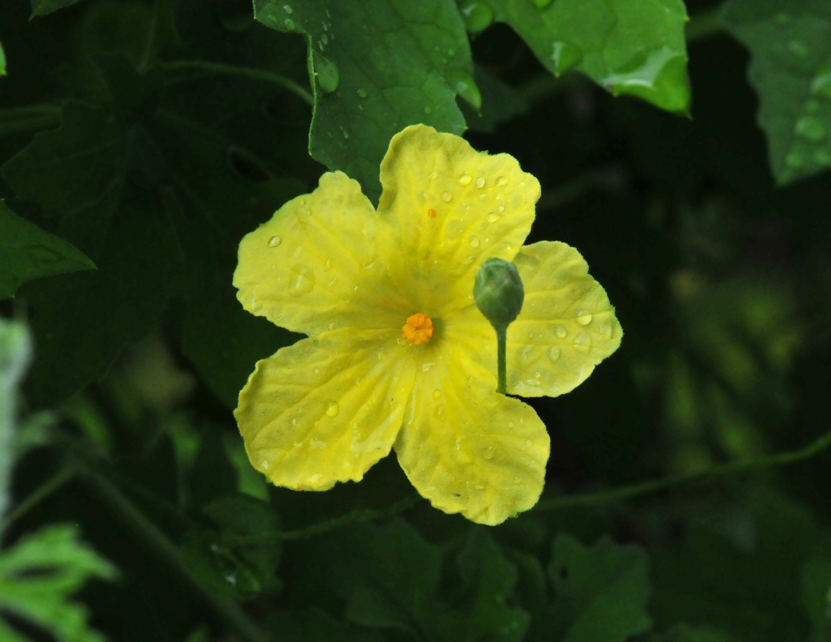 I was surprised to learn that bitter melon has been around in the US since Colonial time. Back then they grew it as a decorative vine for cottage gardens. I can imagine why. The canary yellow flower of the melon stands out from the green toothed foliage, and the fragrance is exceptionally sweet.