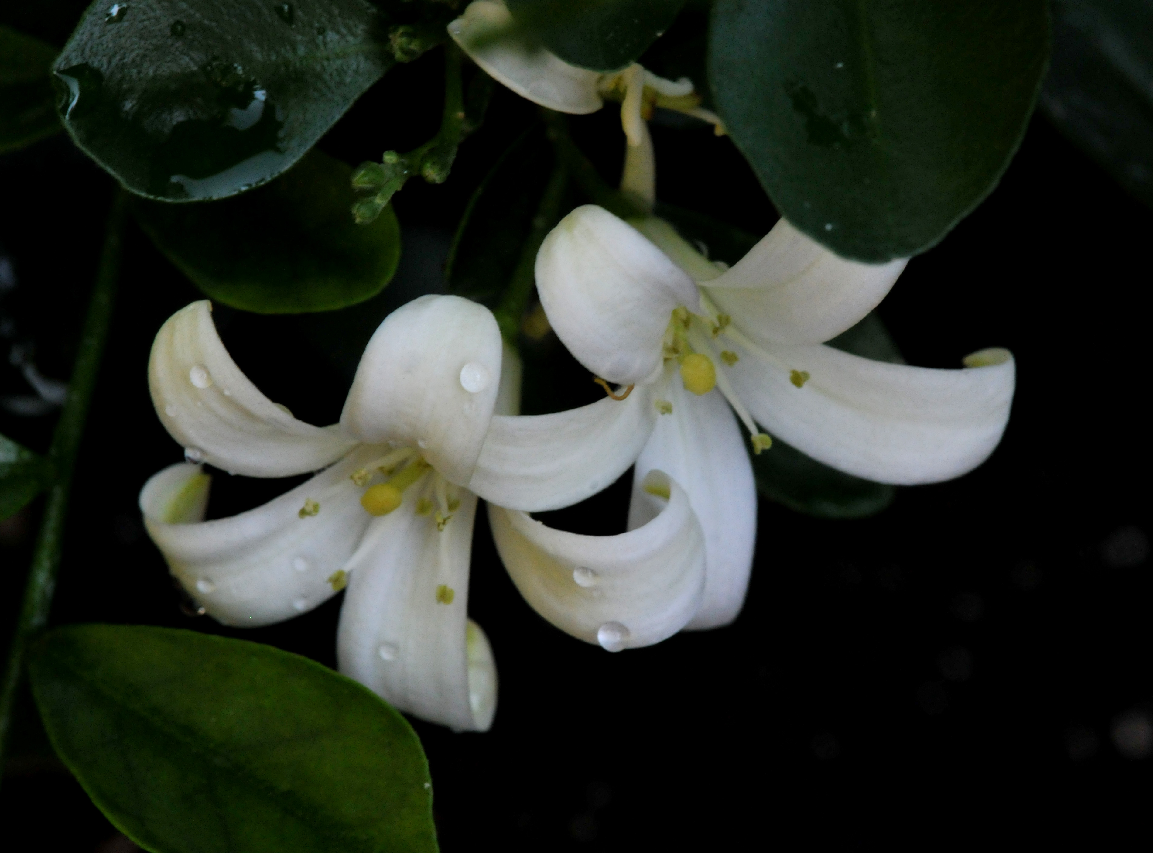 I got Orange Jasmine, Murraya paniculata, to surprise Bill.  When we were on vacation a couple of years ago, he walked under the canopy of Orange Jasmine and stopped midway under it.  He kept smelling their fragrance.  I waited until the plants I got flowered then I let him know we had new additions.  He remembered the trip.