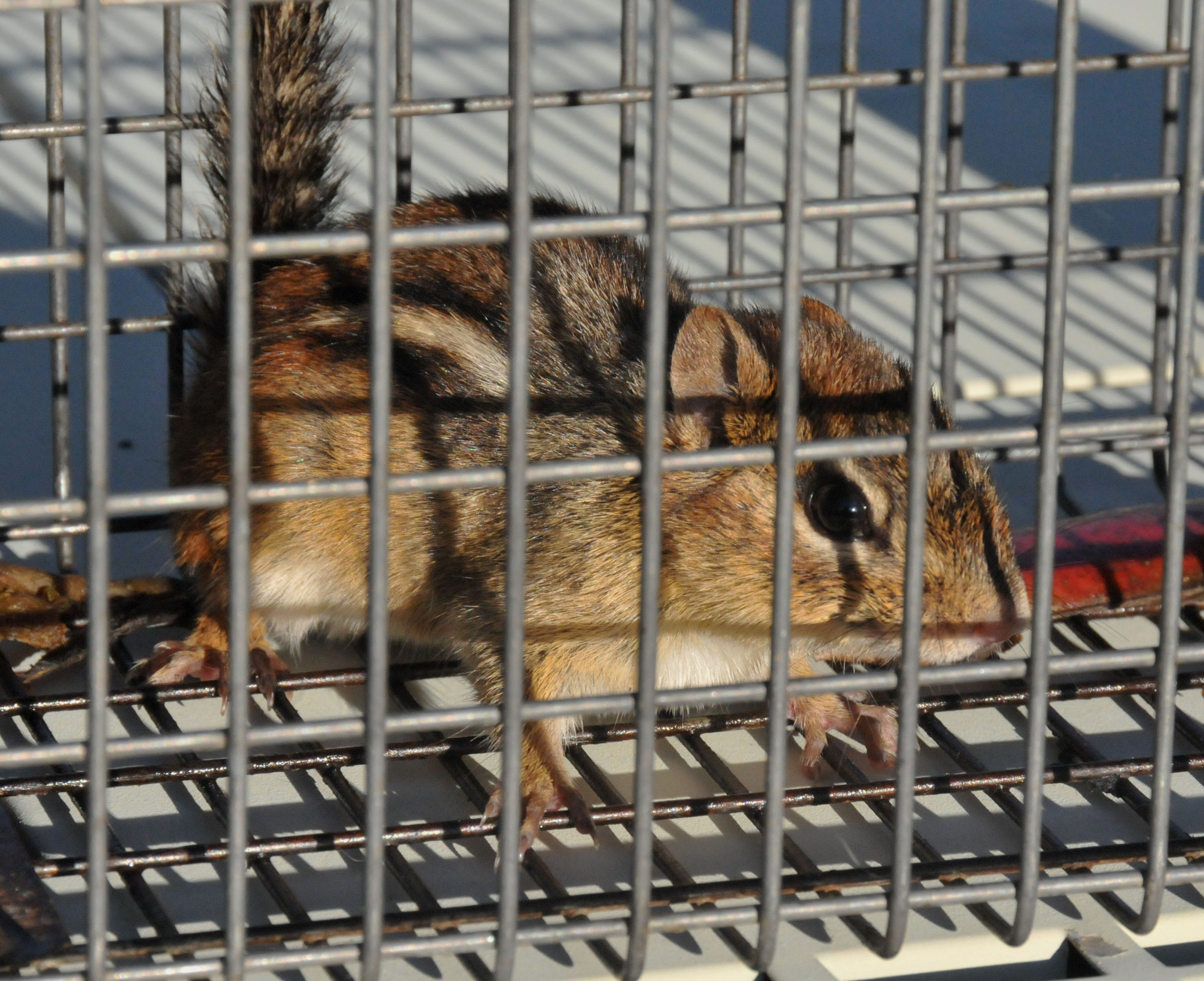 Yes, we got our first POW of the season, a plump one too. Since we declared war on the chipmunks for invading our garden and robbing our seedlings and vines we have trapped at least 20 or so of them each year. We abide by the Geneva Critters Convention; we don’t torture or withhold food from our prisoners. If we cannot deport them right away, ripe peach, pear or plum is always provided. We also make sure that they are in a comfortable jail cell (Have A Heart trap) and have warmth at night.