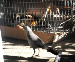 They are very tame and did I mention intelligent? They love fruits. We trap chipmunks with fruit bait and one of the catbirds got trapped in the cage once. They learned. Now they trip the trap then get the fruit through the metal bars from outside. One great story showing their intelligence was the time we had a chipmunk trapped in the cage. We left half a peach in the cage for the critter. I saw a catbird walk around the cage trying to determine which side was the closest to the peach. Then he reached for the peach, pulled it a little bit closer to the bars. The poor chipmunk, aside from being trapped, now had his food being stolen right in front of his face. I had to hand it to the chipmunk, he pulled the peach back to the middle of the cage. At this point, he was more concerned with keeping his prize than being trapped.
