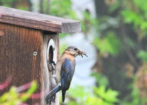 They have 4 little blue eggs now. Yes, I sneaked a peek. I just wanted to make sure that there weren’t any Cowbird eggs in there or that a House Sparrow had taken over the nest. I will check again in a week to see how many chicks have hatched. We had four chicks last year, hope to add another four to the population this year.