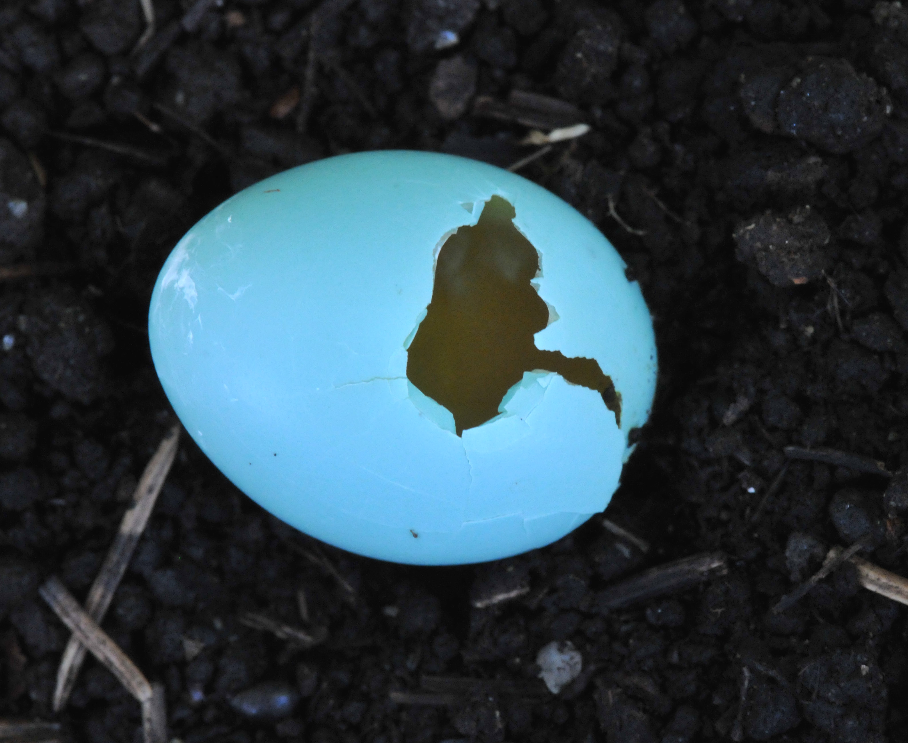 I was outside watering the vegetable garden this morning when I saw a little blue egg on the ground under the nest box, cracked open. My heart sunk. My first thought was the House Wren’s work since they are nesting in a box near by. But the Wren wouldn’t take the eggs off a nest; they would have just poked a hole in it. Unlikely though since they have already built a nest and layed eggs. Then I saw the monster on top of the tool shed, a male House Sparrow.