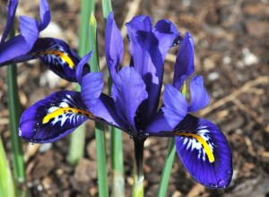 They have been pushing their leaves up above ground for a couple of weeks and finally opened up. A beautiful deep blue with yellow blotches, an Iris called Harmony (I. reticulata Harmony) is another flower that blossoms in early spring, and this little beauty is only 4″ above ground. Cute little thing.