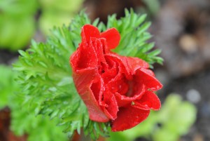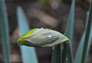 It was normal spring weather today, rainy and chilly as spring should be.  After an unreasonably hot March,  we finally have spring-like weather back.  It’s been raining or drizzling on and off all day.  I decided to roll the row cover back over the vegetable seedlings, though I knew they’d be able to deal with 40 degree temperatures. Howevert the cold does slow their growth.  I want my salad sooner.