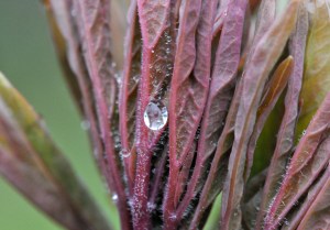 There was a brief period today when I could duck out with the camera without ruining it.  Something about the silvery, shimmering drops of water that hang on to leaves and flower petals that is very soothing, very meditating.  Nature stages them, I just took the photographs.