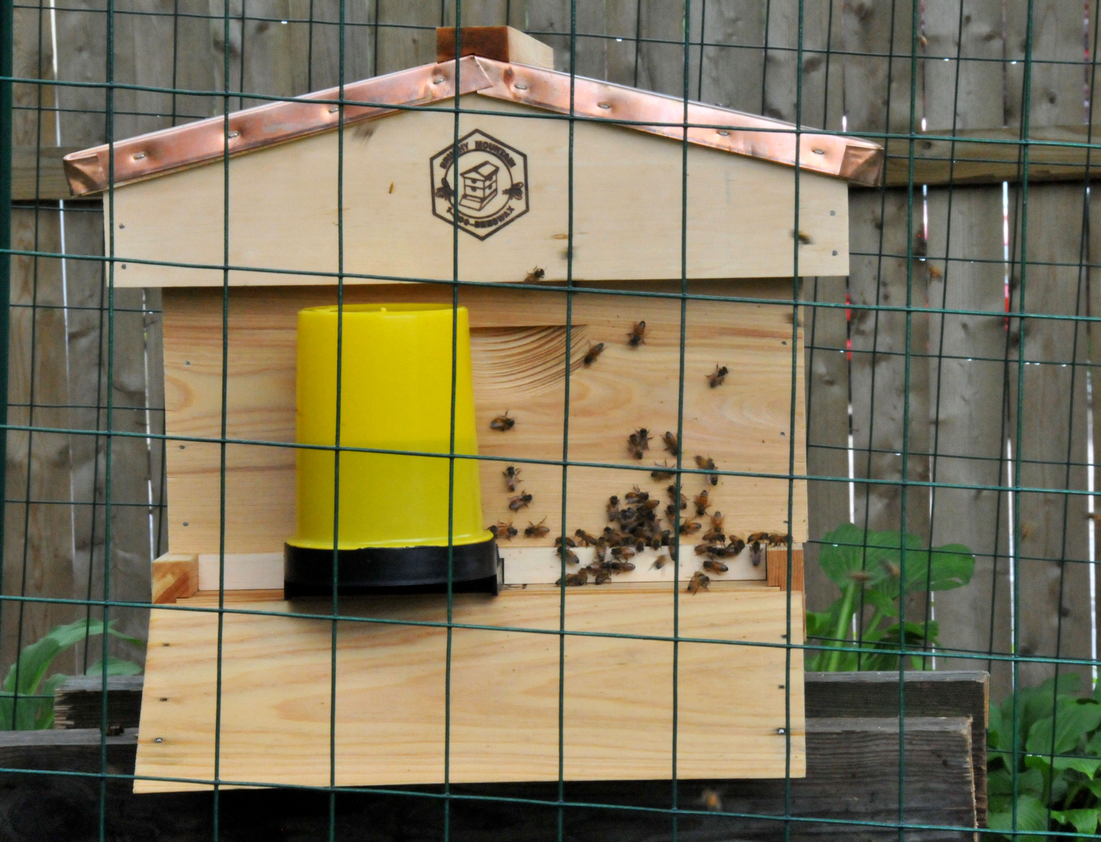 I went back to check on them an hour later. The bees in the cage were still huddled together in a clump. I turned the cage over and dumped them on the ground in front of the hive. With that, they fly up to the hive. It worked! Through all this I was never stung once. I was told they were very friendly and they were right.