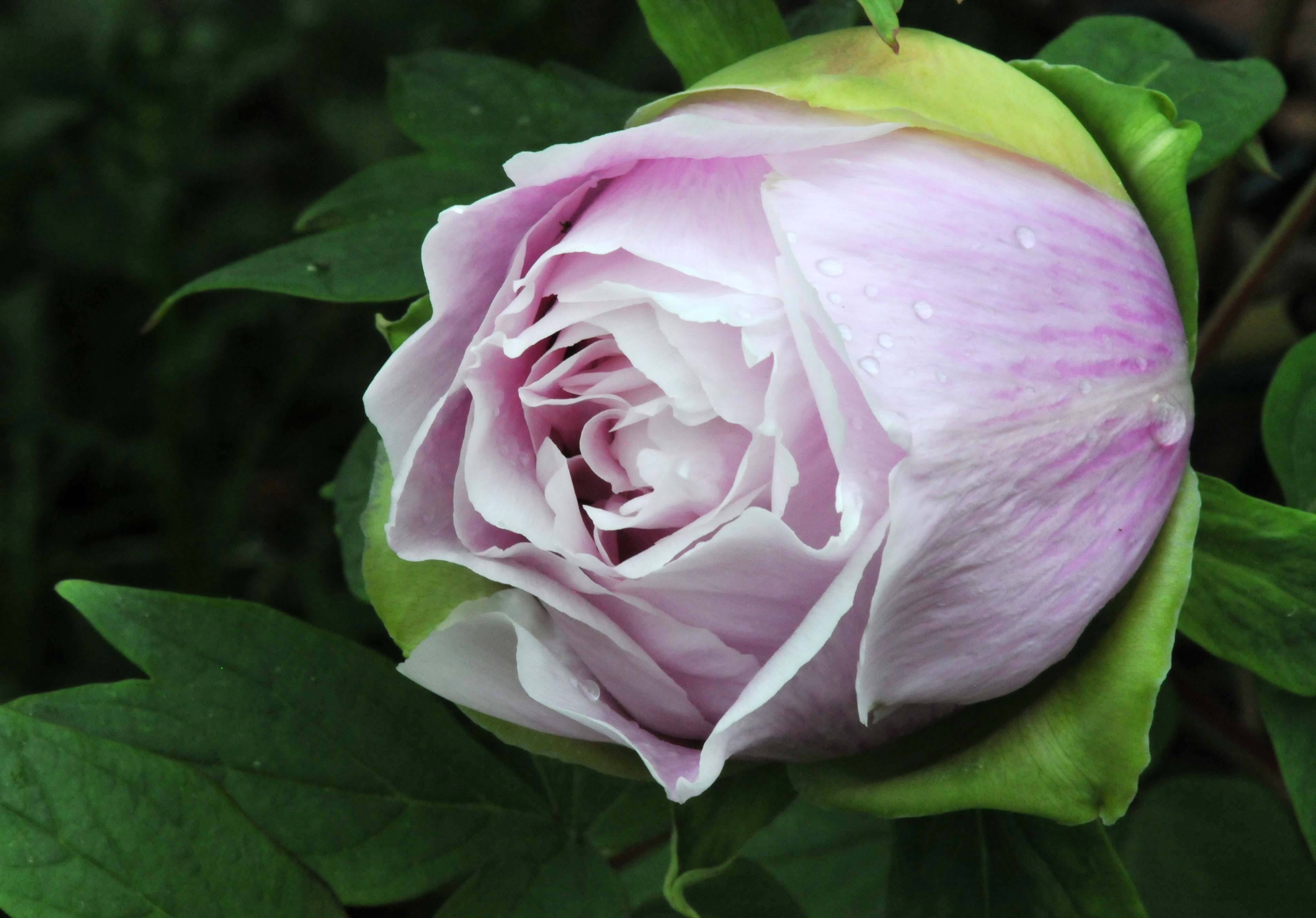I wish the rain would stop. It’s been raining on and off for a few days. I know it’s good for the garden, but not all plants love a lot of rain. We have waited for the Tree Peony “Nishiki” (Paeonia suffruticosa) to blossom, twelve flowers this year, but they’re too delicate to withstand a heavy rain and that takes the fun out of it.