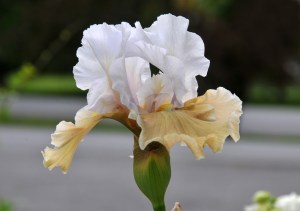 I love their blade-like leaves, especially in the morning when they are graced with dew. The dewdrops gather like a string of diamonds along the edge of the leaves and glisten in the sunlight. They are also drought tolerant. The row next to the garage is partially under the roof so they hardly get any rain. I water them once in a while when it’s really hot and dry, and they are thriving. Most of them bloom once per season but I have one that re-blooms in the fall, Lenora Pearl. We had a freak snow storm in October last year but this re-bloomer weathered that too. My task now is to search for more varieties of the them.