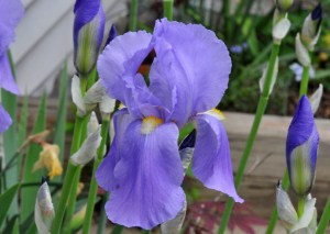 Princess Beatrice (Iris pallida), this lavender blue Iris came with the house, a lot of them. I had separated and replanted them after a few years, creating another row by the pool fence. That may have been a mistake. We have a tough time sitting on the patio or pool deck when they are in full bloom. Their fragrance is too strong. This year, luckily, the row by the garage walkway bloomed first. The ones by the pool fence are just budding.