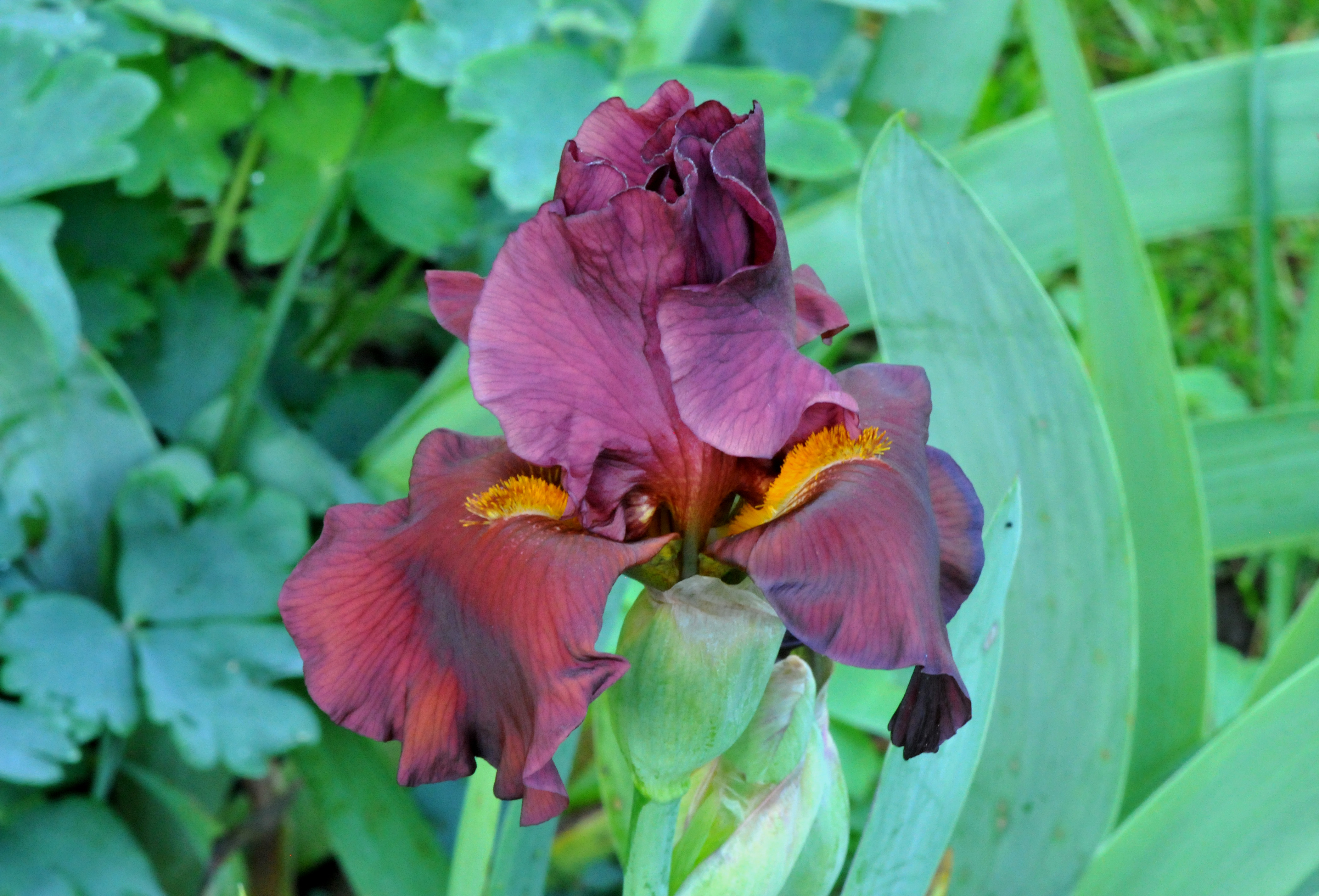 The bulb boys are first in spring. Behind them, the rise of the rhizomes bringing on the bearded Iris. If you calculate correctly, you will have flowers blooming in the garden all season long from spring to frost. Most of our flowers from bulbs are already gone. What we have now are the Bearded Irises, Lilac, Clematis Montana and Columbines.