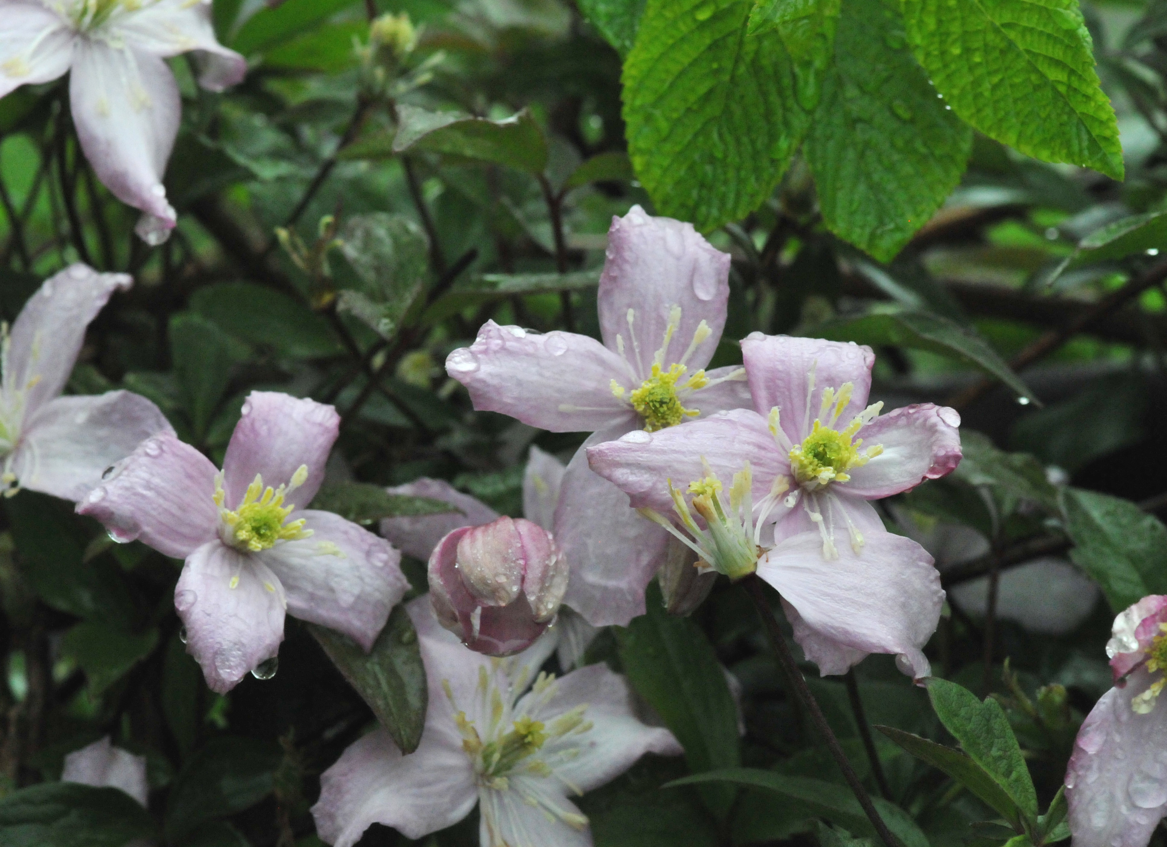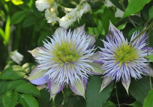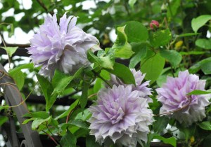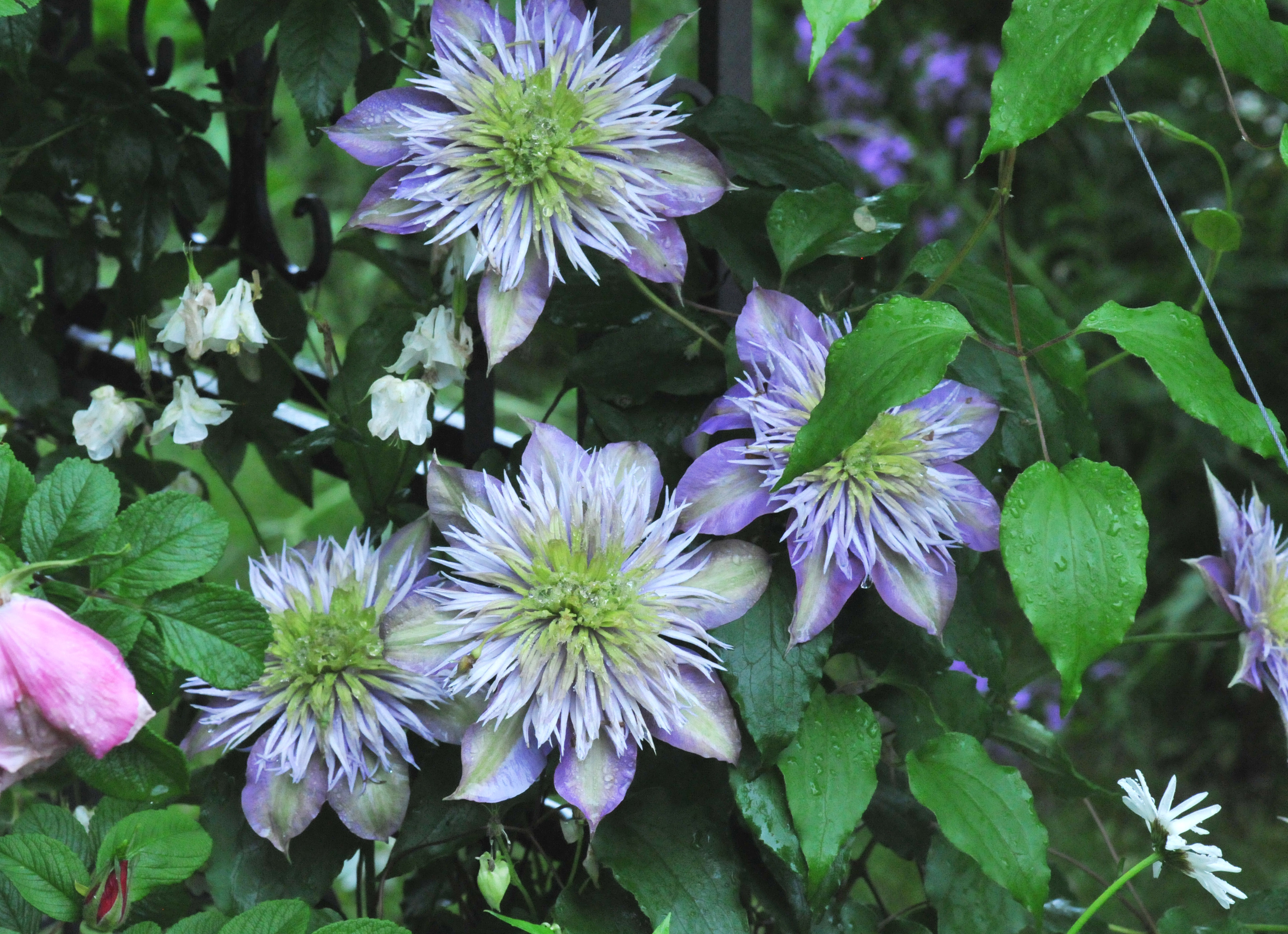 These fast growing vines are doing their job pretty effectively. Some of them are growing too fast for me, the Montana for instance, and I still have a lot to learn about pruning them. But so far, they are just fascinating vines in all shapes, colors and fragrances. Here are some of the early bloomers..