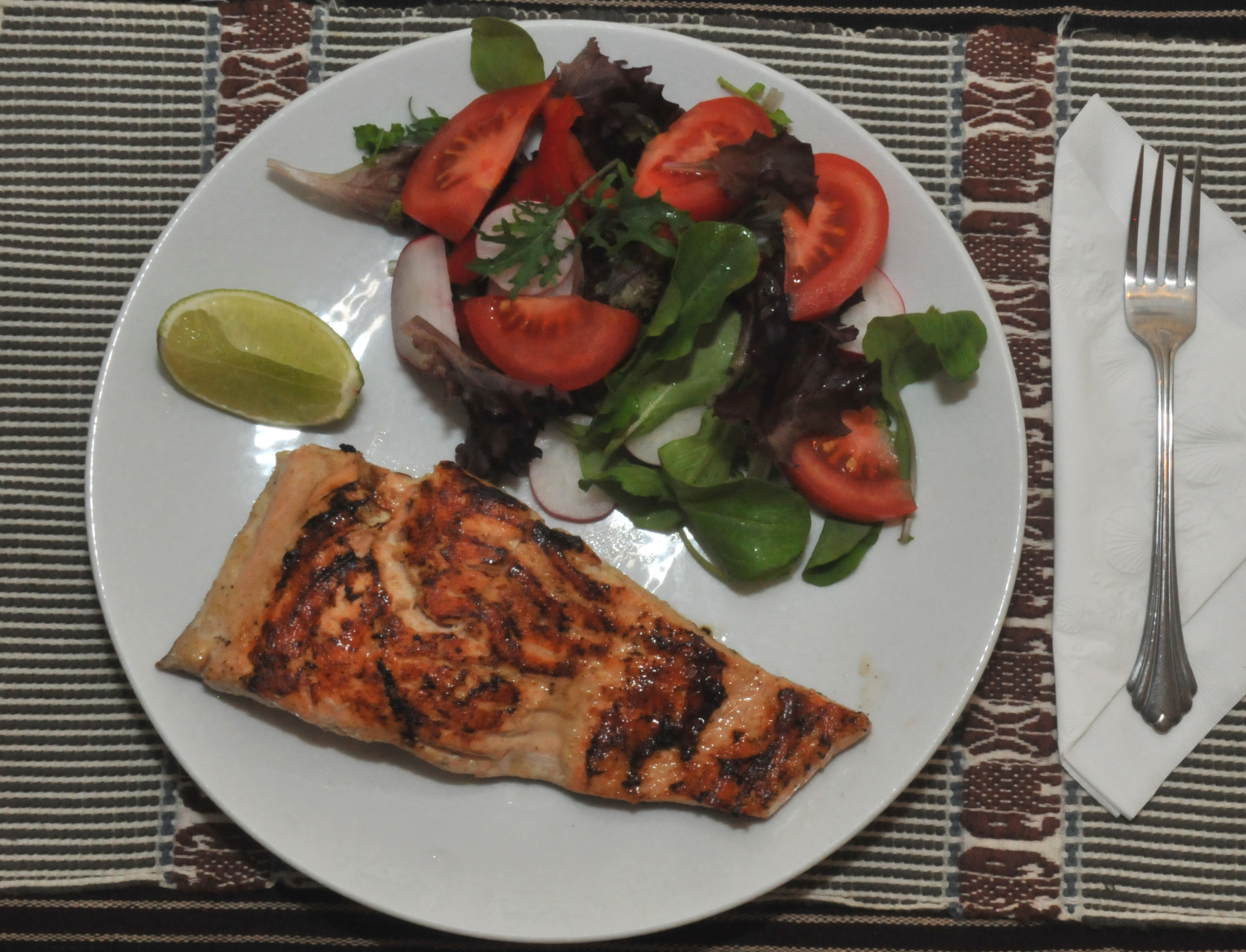 Last weekend we, or I in this matter, made seared Wasabe & mustard salmon with garden salad. It was easy to make and we felt healthy already.