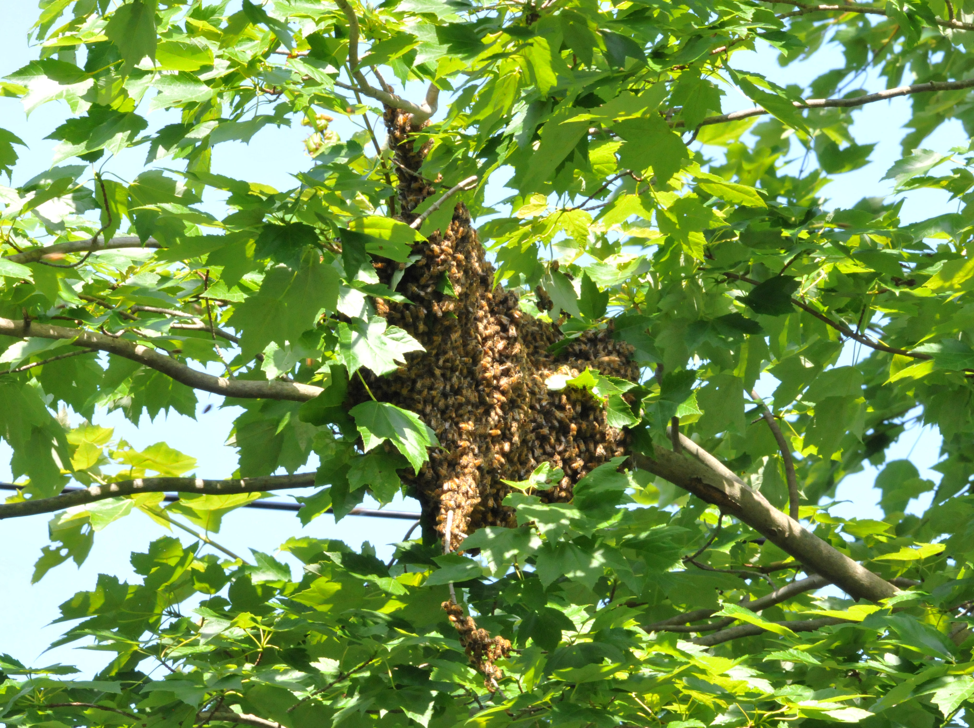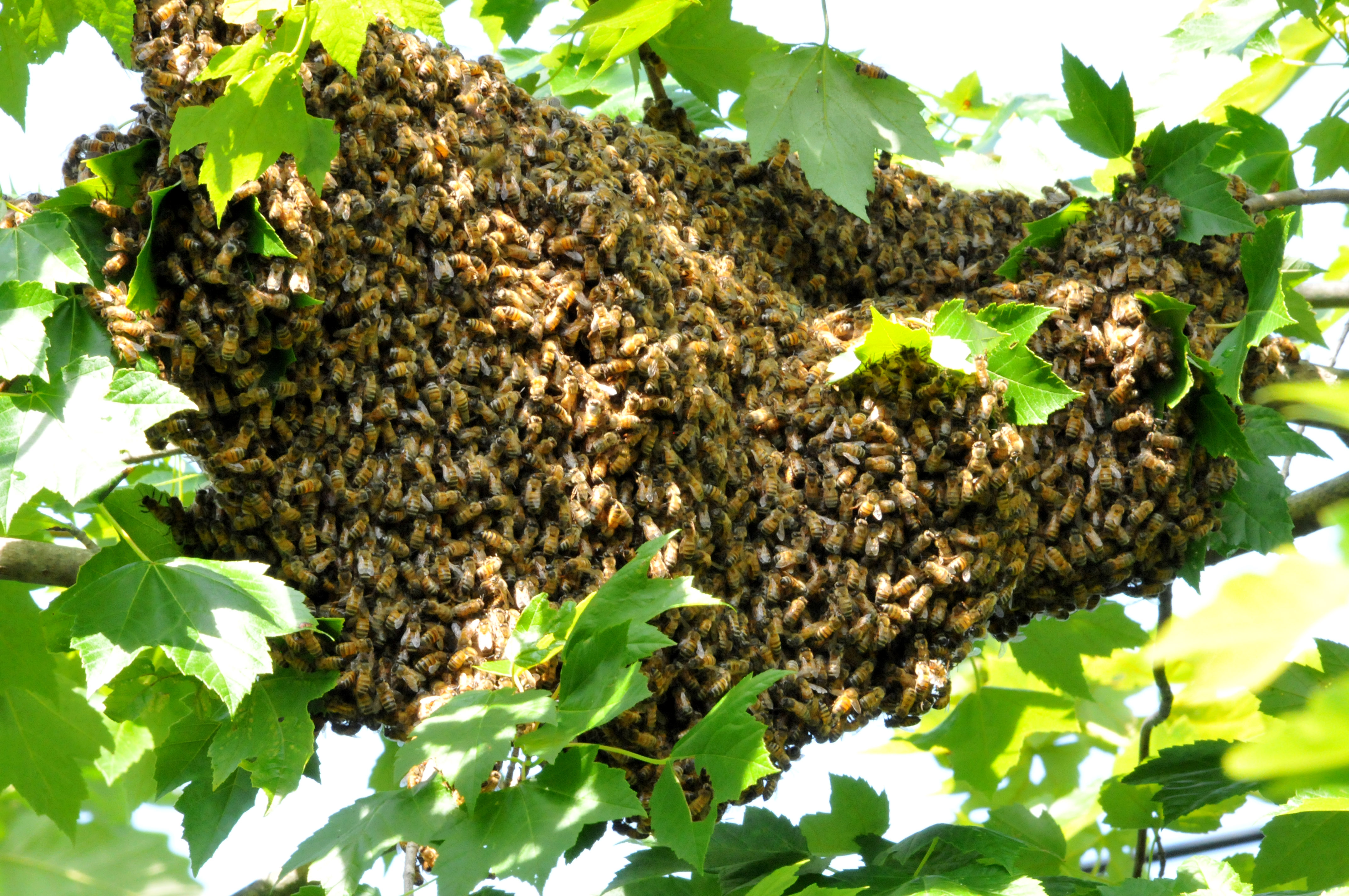 BTW, if you had been able to wet the swarm with a hose, they would have been unable to fly until they dried themselves which would have bought you more time, though it sounds like they were too high for that this time.