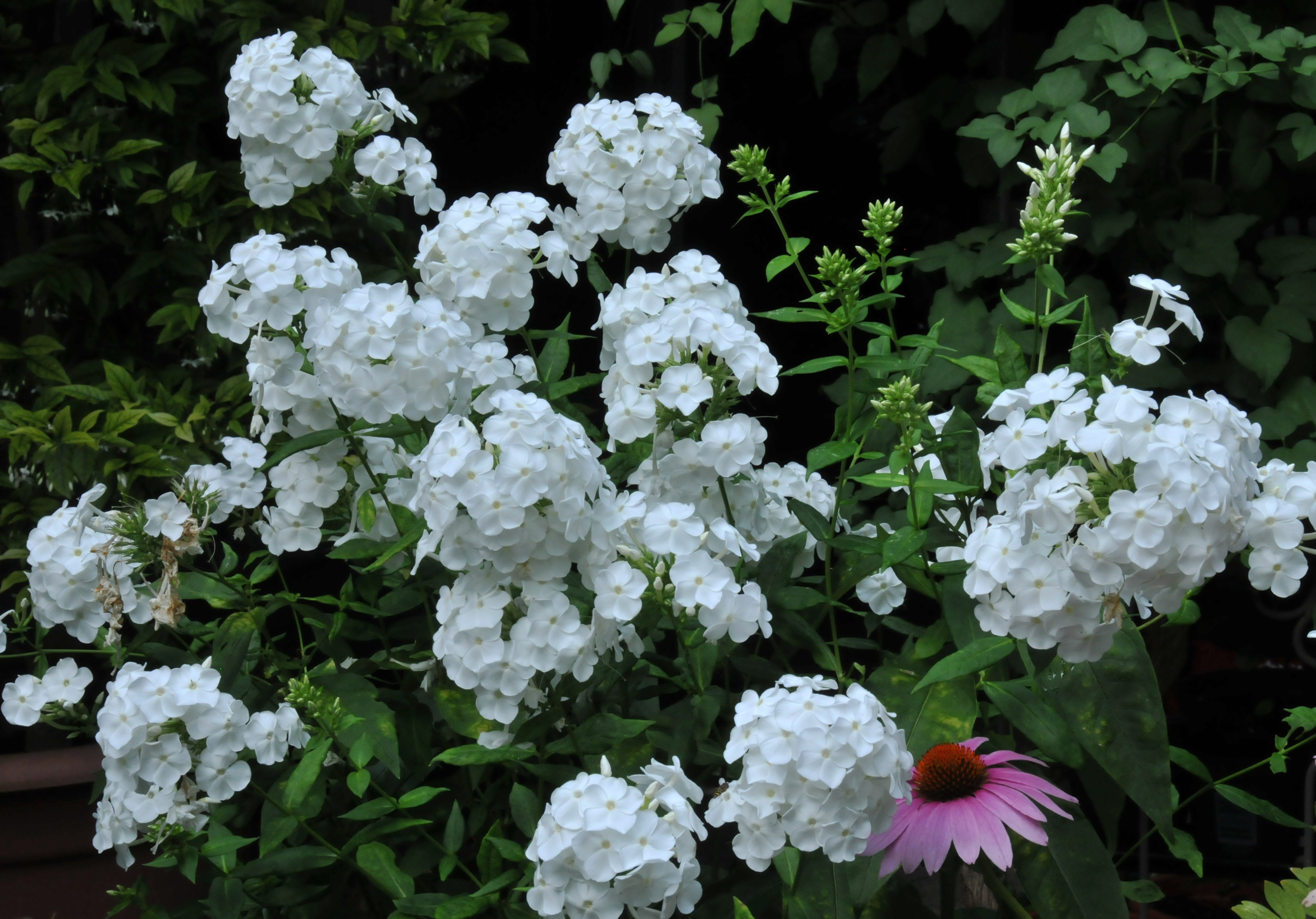 Why is Garden Phlox good to grow? Because they perform well in the heat of summer when most plants, aside from cactus, don’t. If they’re not too tall, they’ll flop a little under a rain storm but will perk right up once dry. They readily self-sow, so they can be invasive, but with a little discipline in the gardener, they’re easy to control. The only disease that bothers them is mildew, but if they’re dry and not too crowded mildew shouldn’t be a problem. They work beautifully as cut flowers.