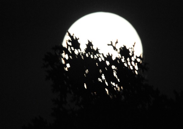 It was nothing particular about the look of the moon tonight. I actually liked the fairy ring around the moon better. It’s much more fascinating to me than just the second full moon of the month, but we enjoyed tonight anyway. We decided to enjoy our Merlot in the garden, under the moonlight, with an orchestra of katydids, crickets and frogs. The fragrance of Almond verbena and jasmine helped to create a soothing mood. What’s missing were the Moonflowers whose buds are as yet too small to flower. It would have been a perfect setting if the Moonflowers had unfurled and the Luna moths come around for the nectar. Here is our Blue moon, a little grainy, as shot from our pool deck.