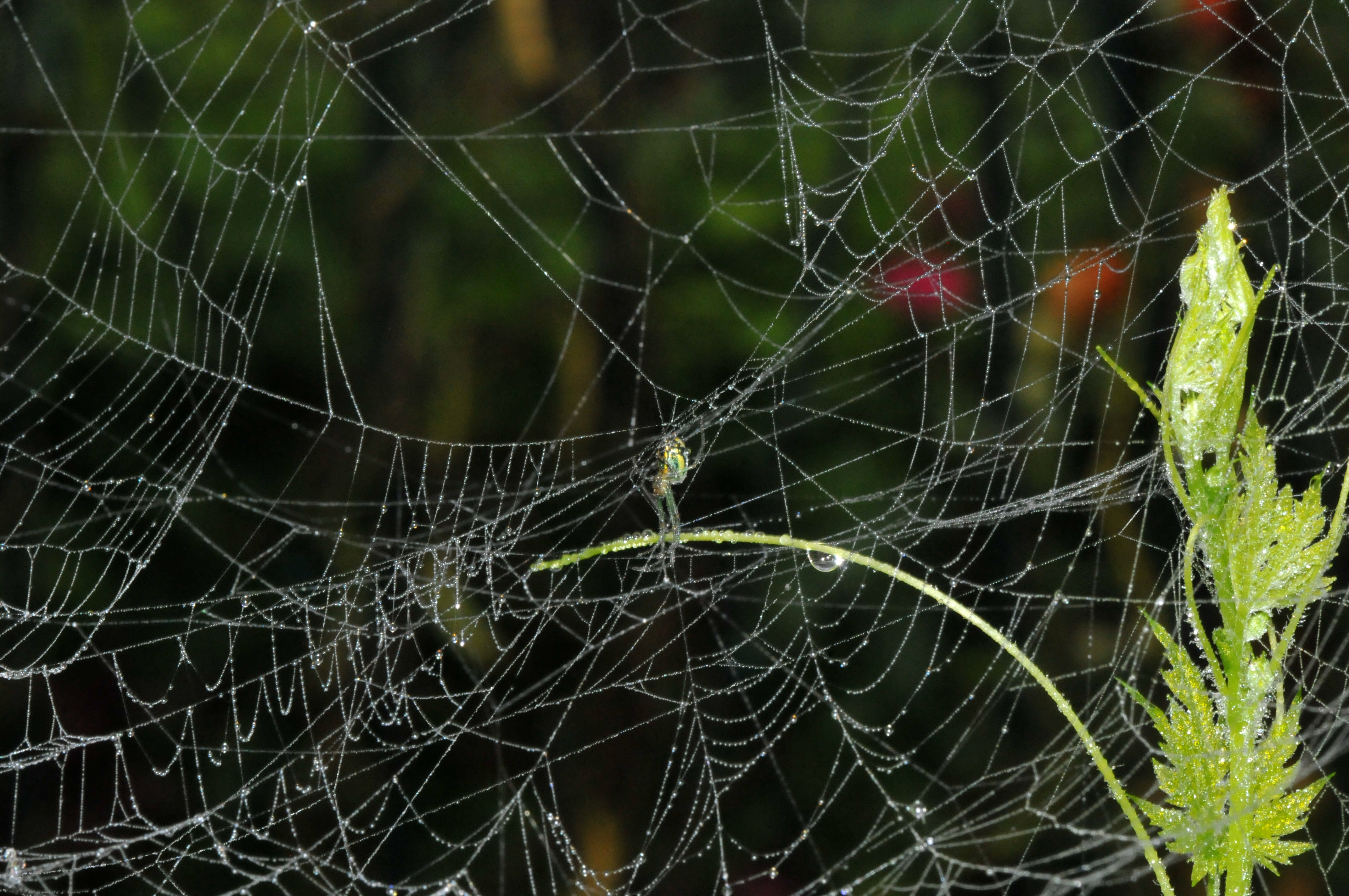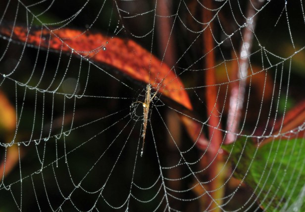 There is also dense fog in early morning, so dense that I couldn’t see further than a few feet and could feel the mist on my face.   It was the perfect setting for a horror movie or a Halloween party and our resident spiders agreed.