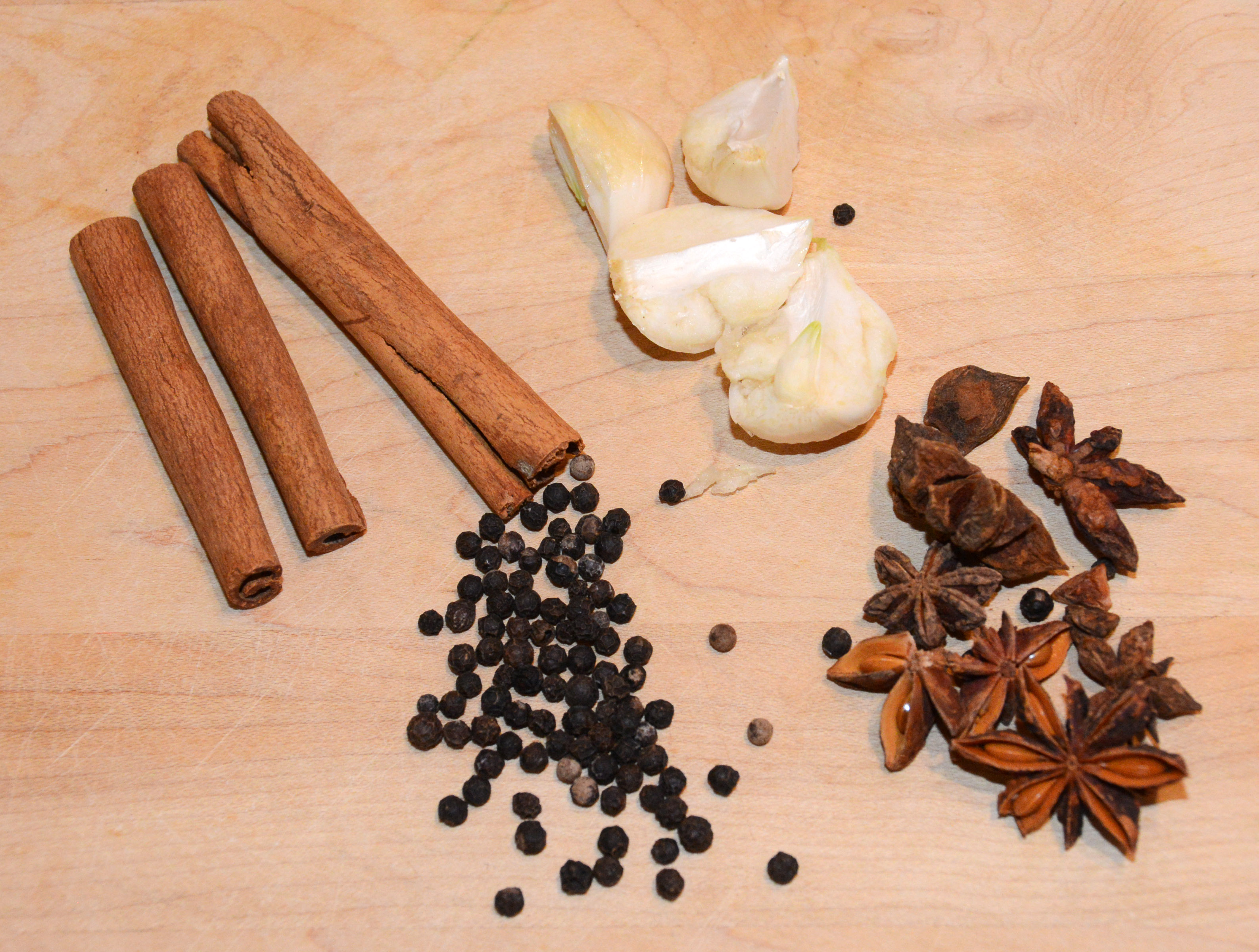 - Put all the spices in the spice bag (that little cotton bag with drawstring) or wrap them up with a couple layers of cheesecloth, tie tightly. If you prefer to have the spices float around in the pot and take them out later that’s fine too. Chewing on a piece of cinnamon or star anise is not fun, ergo, the spice bag.