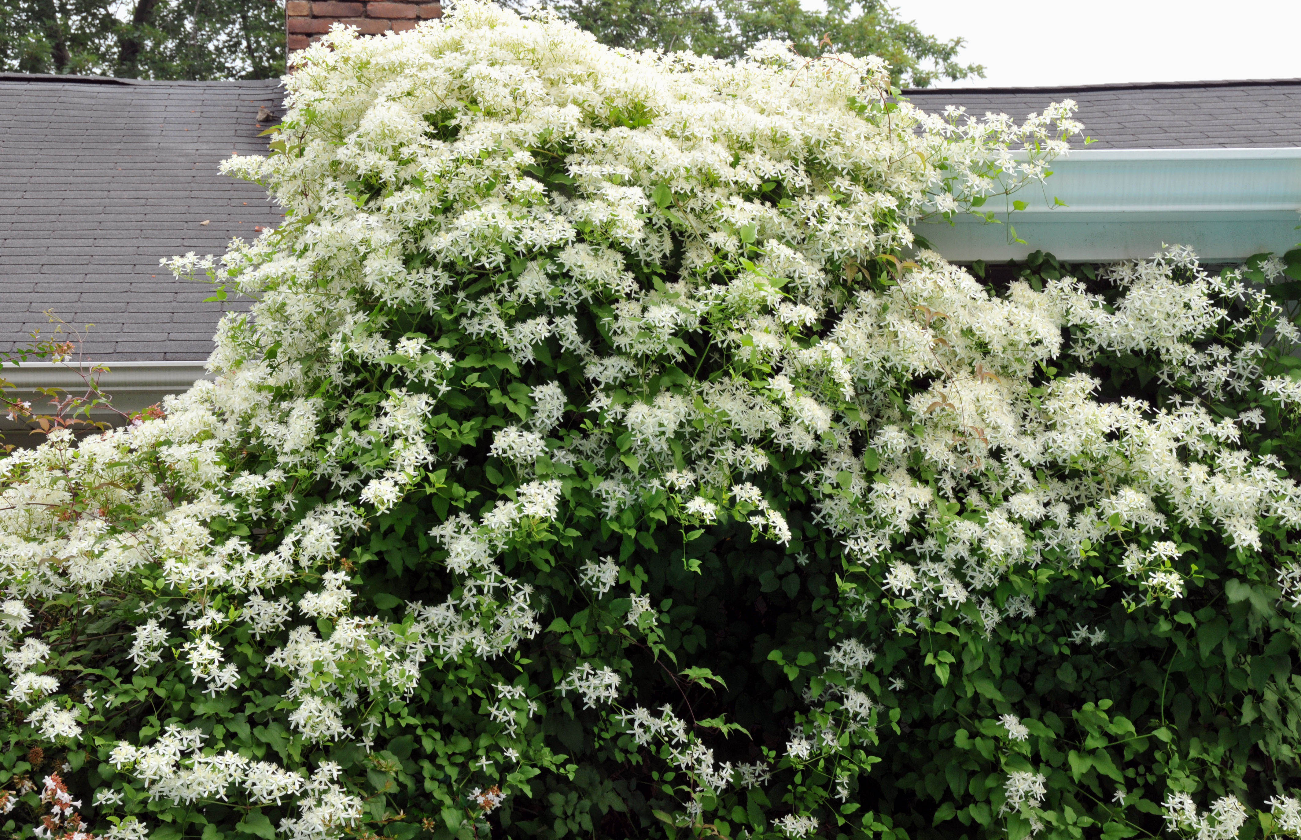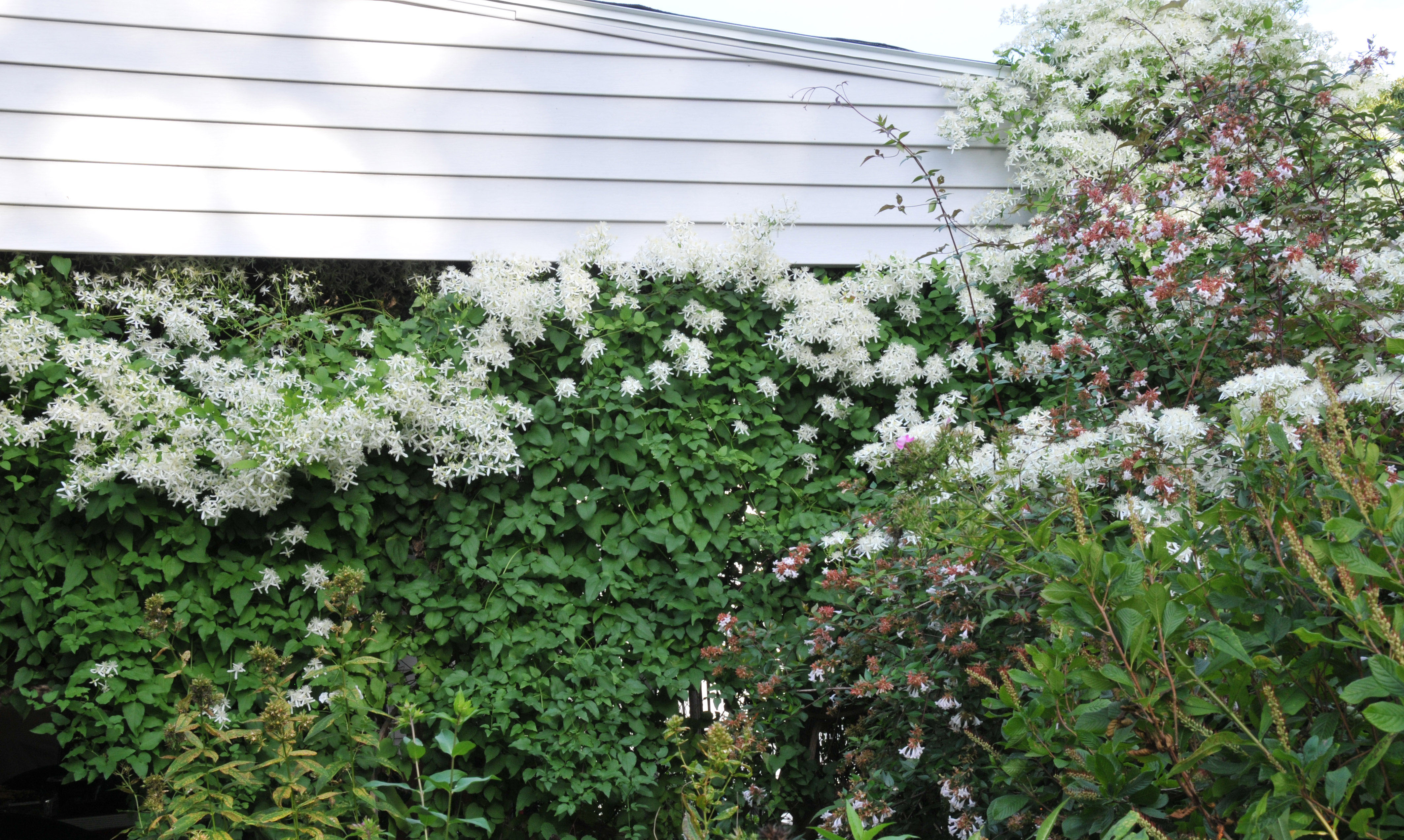 More pluses: It doesn’t require much care, just feed it and give it a good pruning once a year in spring. The bees, butterflies and moths love it. It also provides a hiding place for birds. When there is not much else blooming late in the season, this clematis brings life as well as providing food.