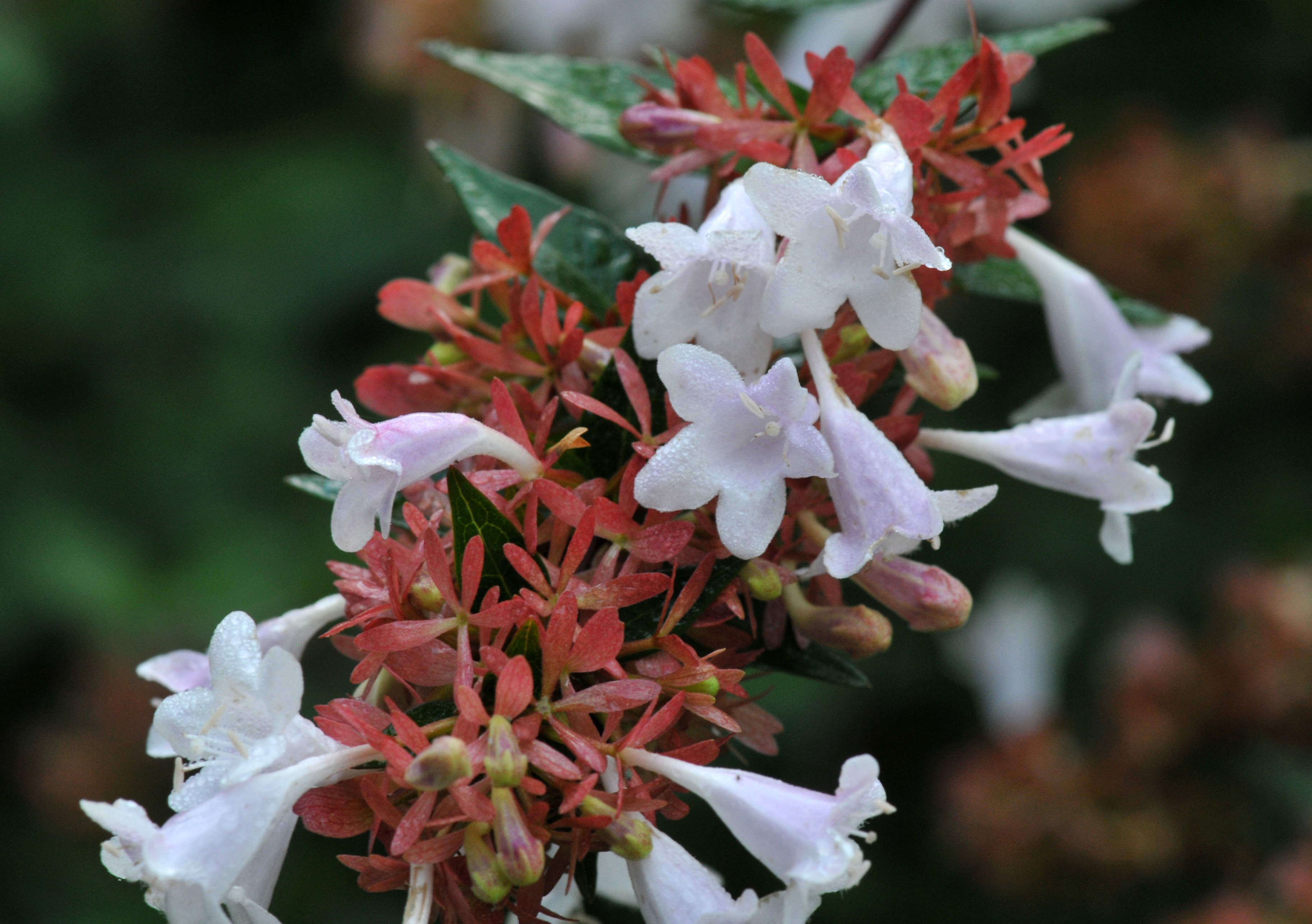 Abelia (Abelia x grandiflora) starts flowering in summer and won’t stop until frost. Its light fragrance draws bumblebees in.