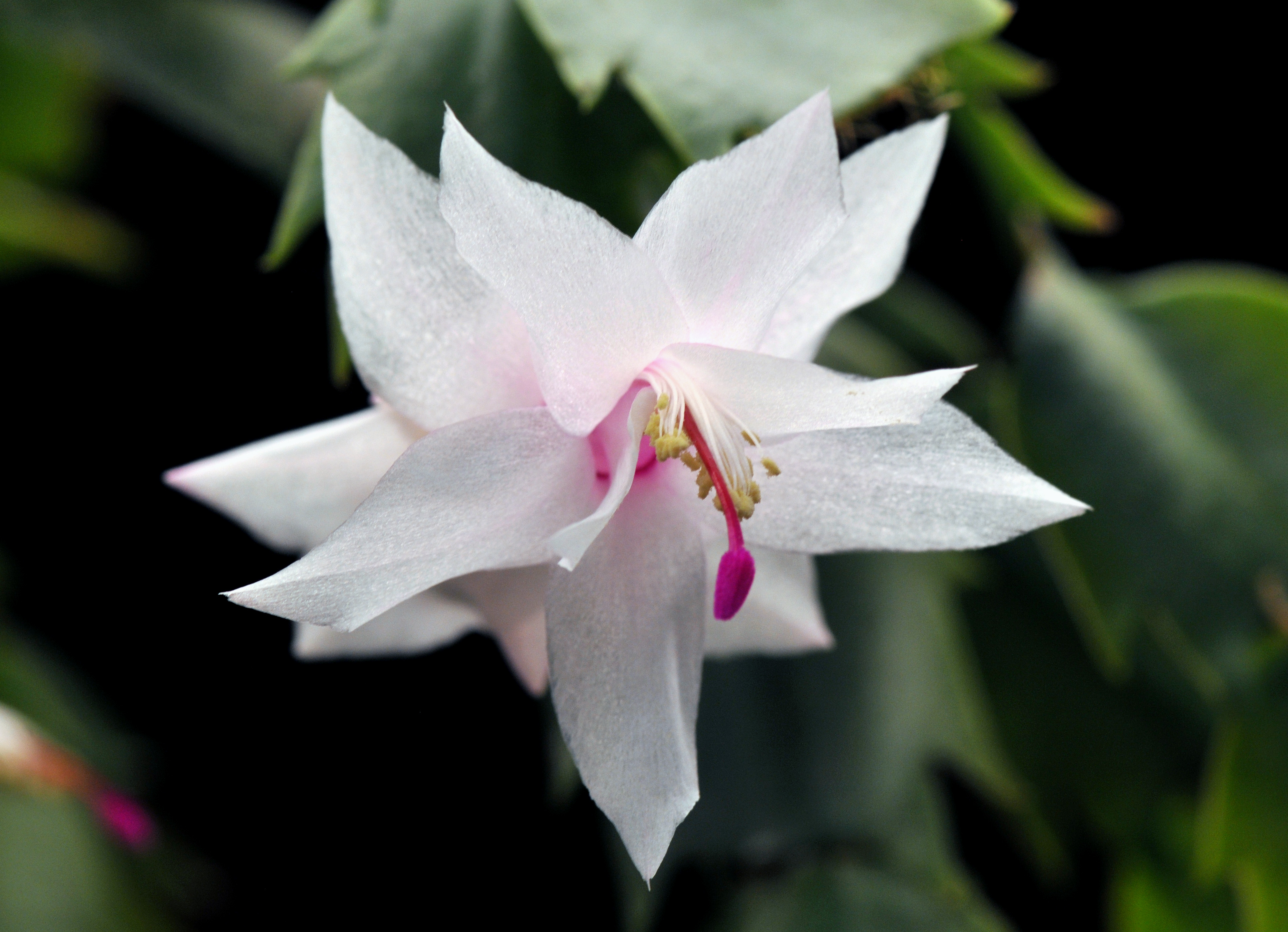 One of the Christmas cactus (Schlumbergera hybrid) bloomed as soon as it got inside.  This is a hard to kill plant.  No matter how negligent the treatment I give them they never miss producing flowers year after year.