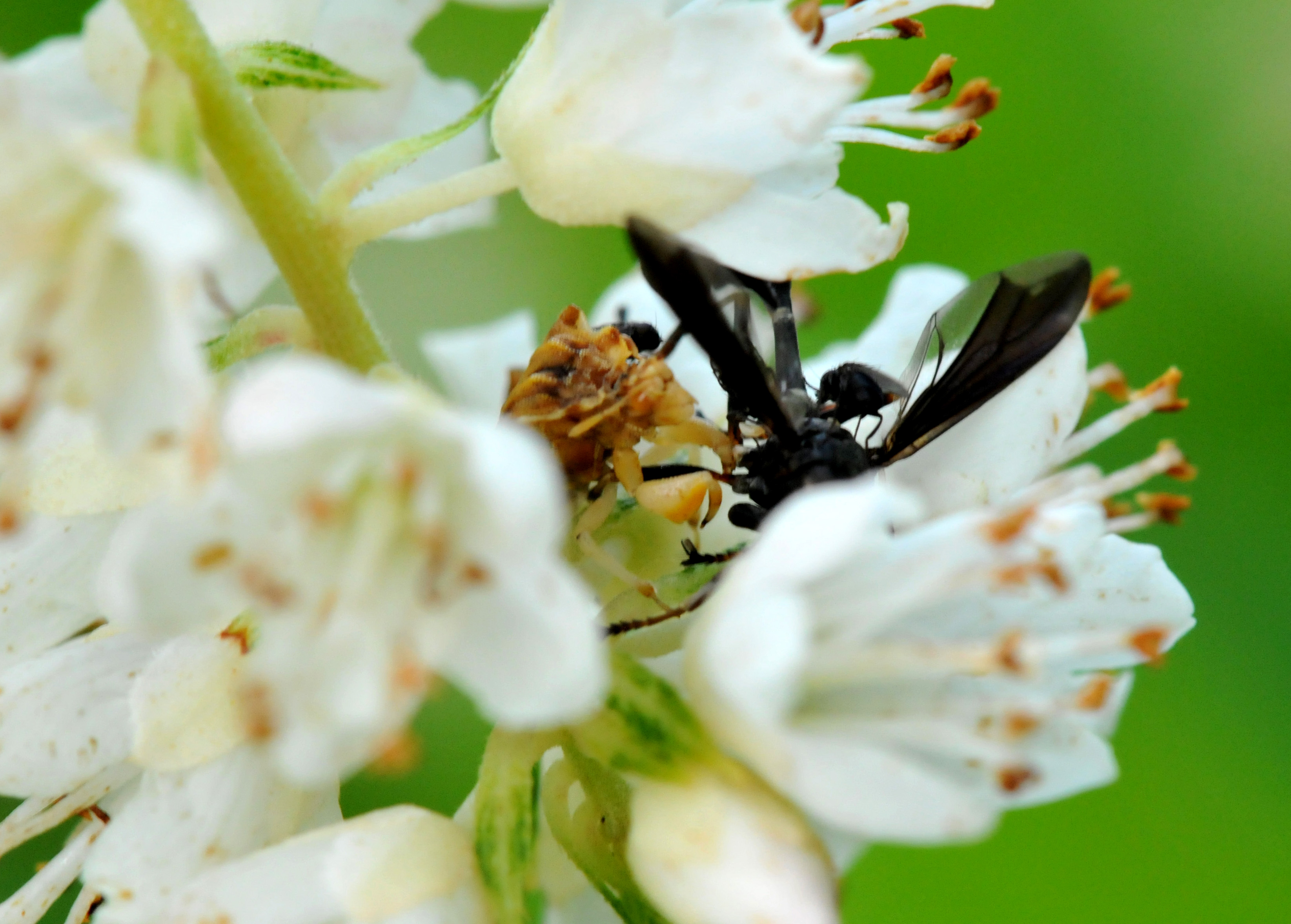 The in-discriminatory Ambush bug (Phymata americana) is very hard to spot since their color blends in very well with the plants they choose and once positioned, don’t move.