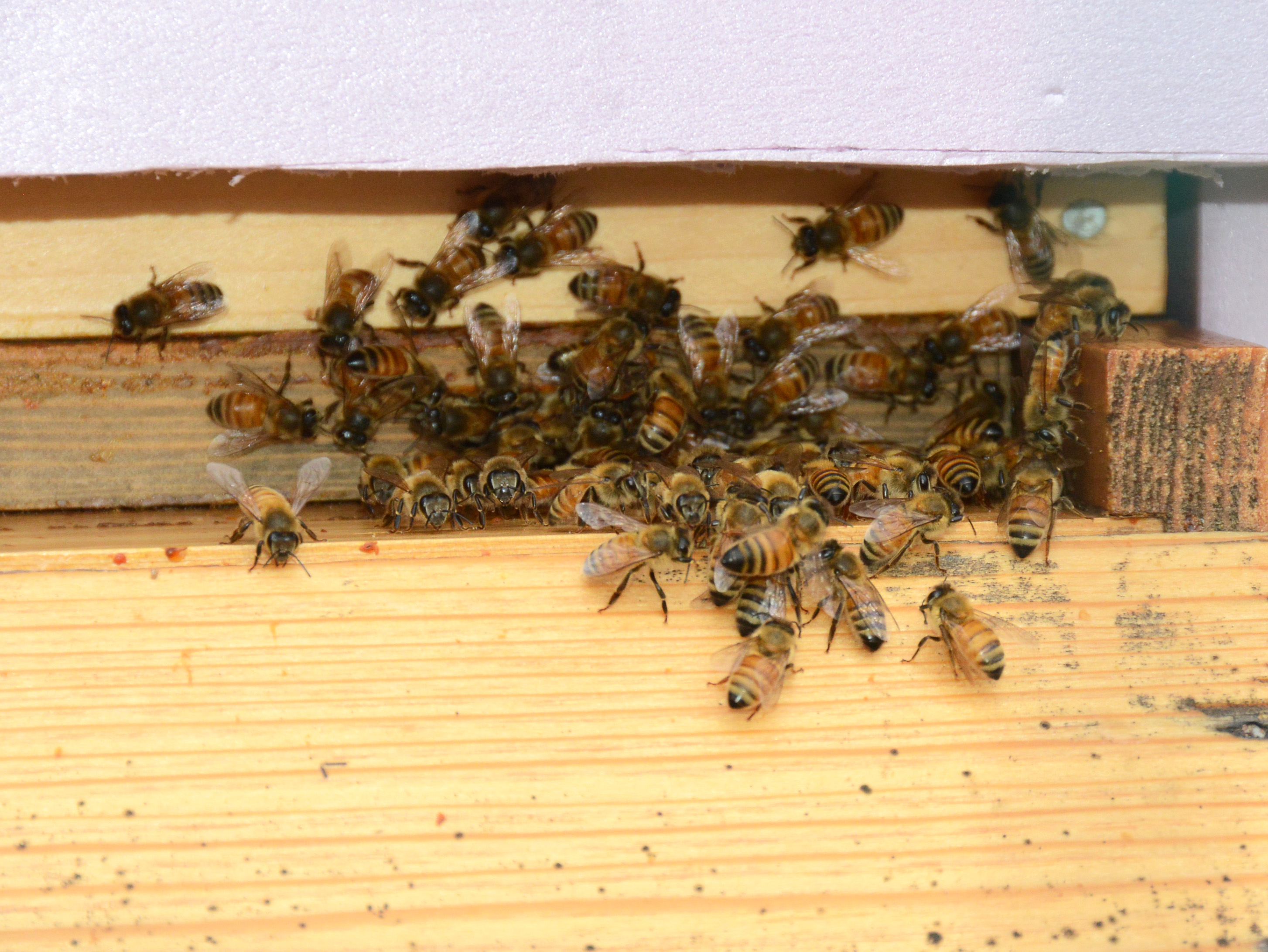 There were many dead bees in front of the first hive but there were many more flying in and out yesterday. I won’t know until next spring whether the hive has survived or not. I hope this is due to over-population as I counted very few mites last fall or yesterday either and this is the hive that stored the most honey when I last inspected them.