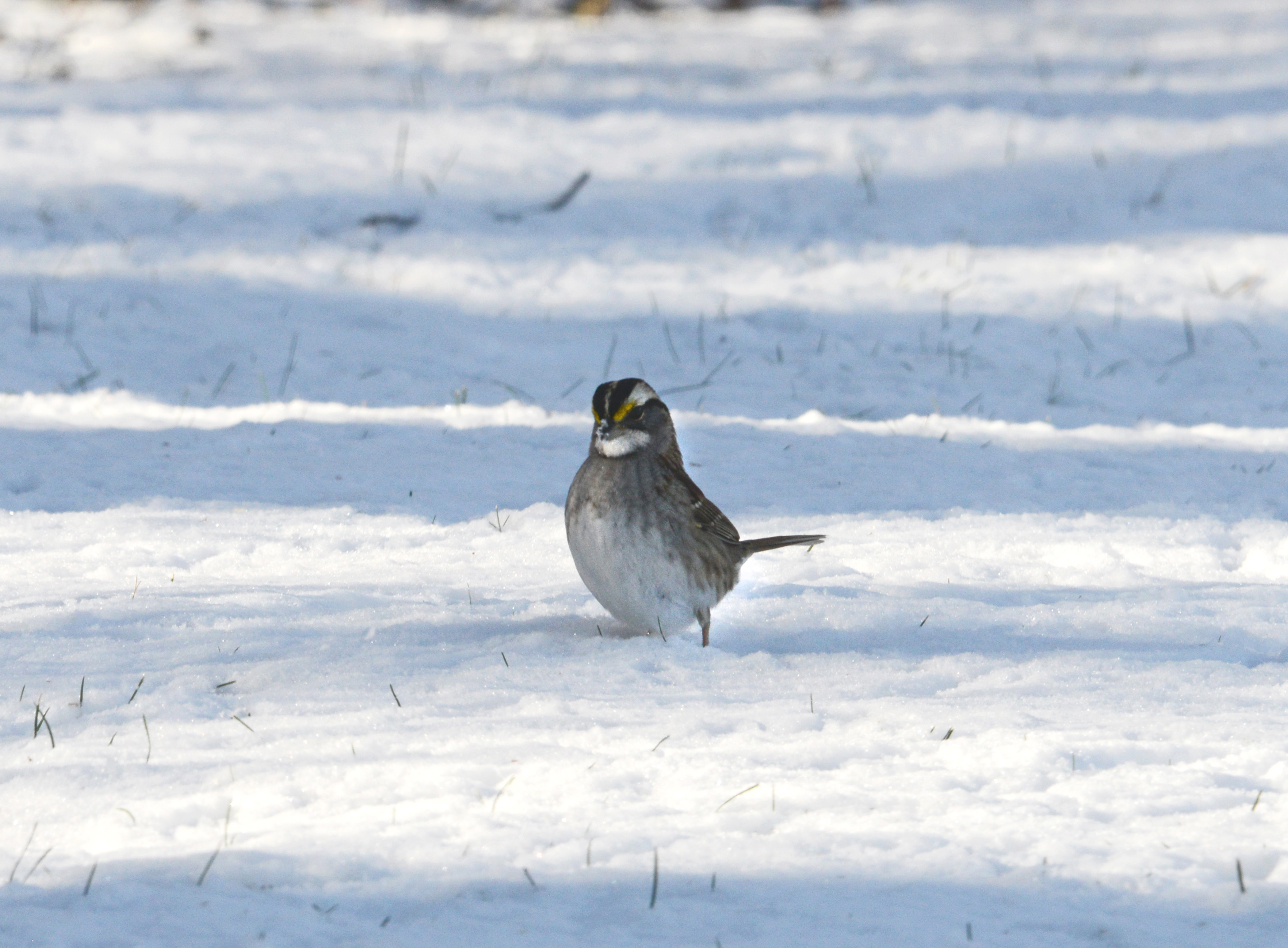 White-throated Sparrows (Zonotrichia albicollis) are also common in our garden. They are easy to identify because of the white patch under the chin.