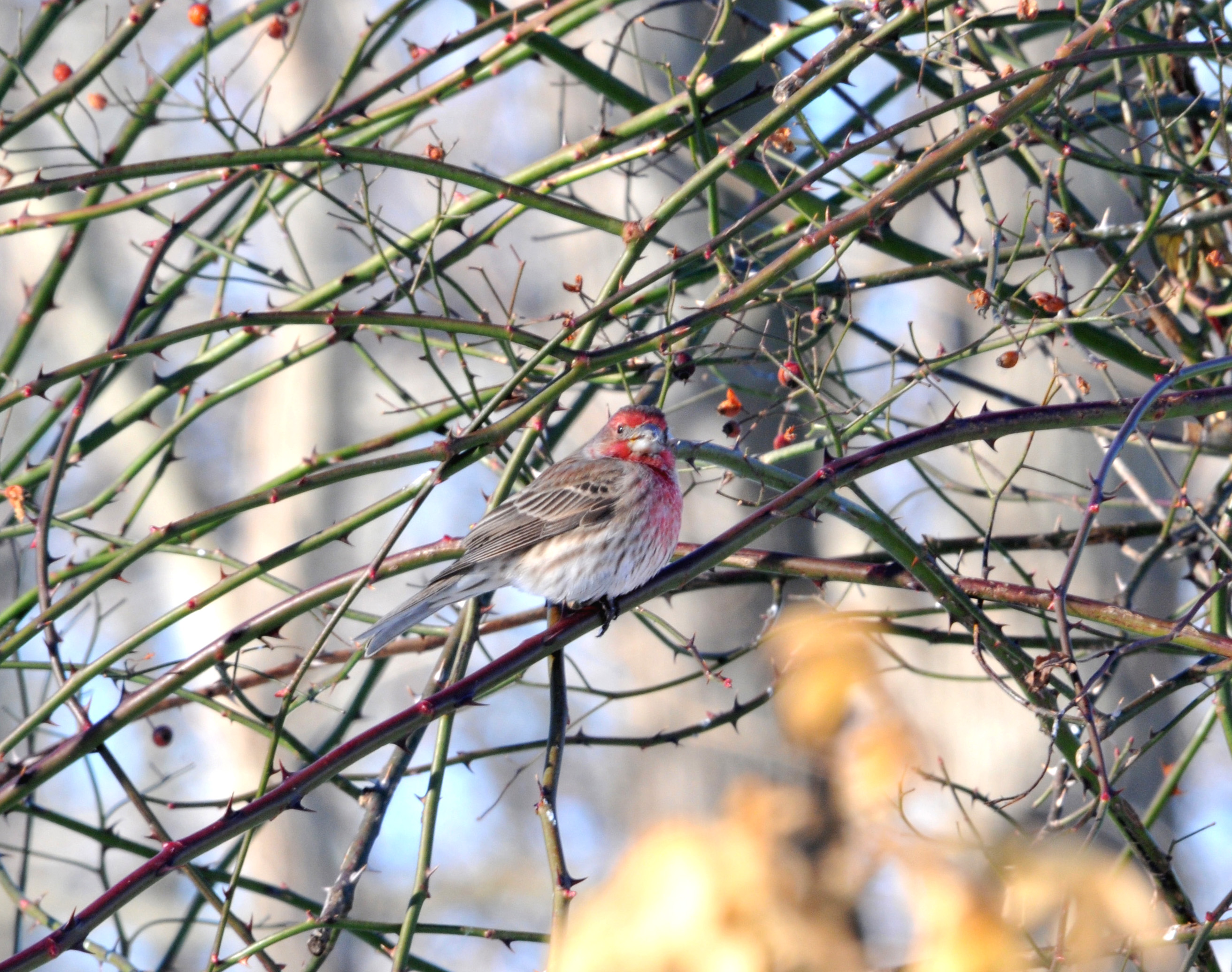 A Cooper’s Hawk landed on one of the birdhouses but quickly took off when he saw me adjust the lens. I think he’s looking for his flying Christmas gifts.