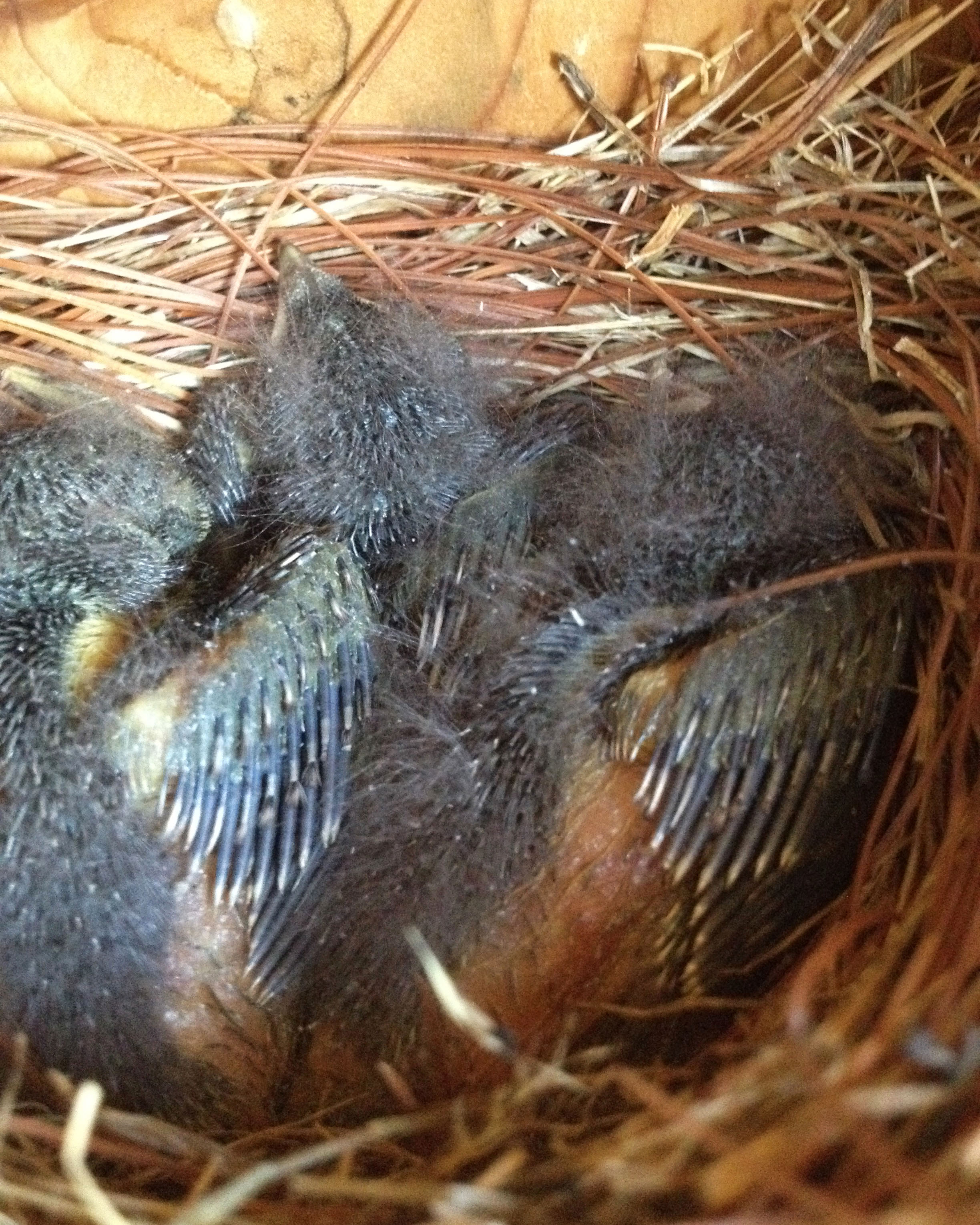 It’s been only a couple of weeks and the Bluebirds have hatched but only three of them. I keep checking on them every 7 to 10 days to make sure that the House Sparrows haven’t raided their nest and killed the chicks. All of them look very healthy now. Mom and Dad make countless trips every day to feed them.