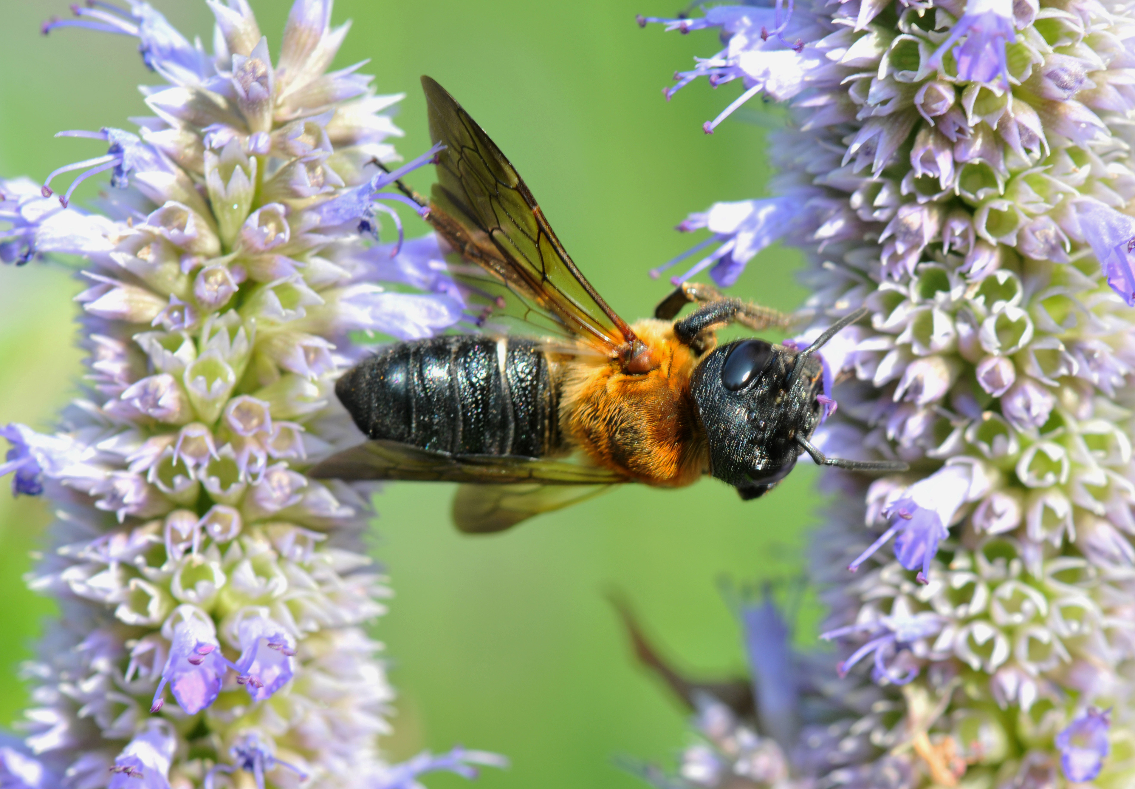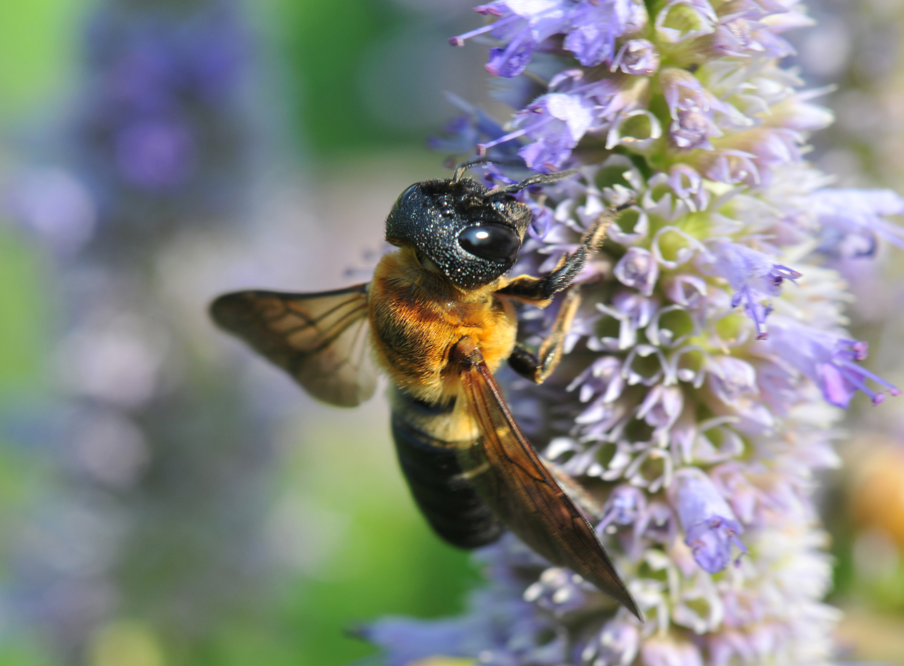 awesome photos of an unseen bee in our parts. our anise hyssop is popular with the bees and hummingbirds, too. 🙂