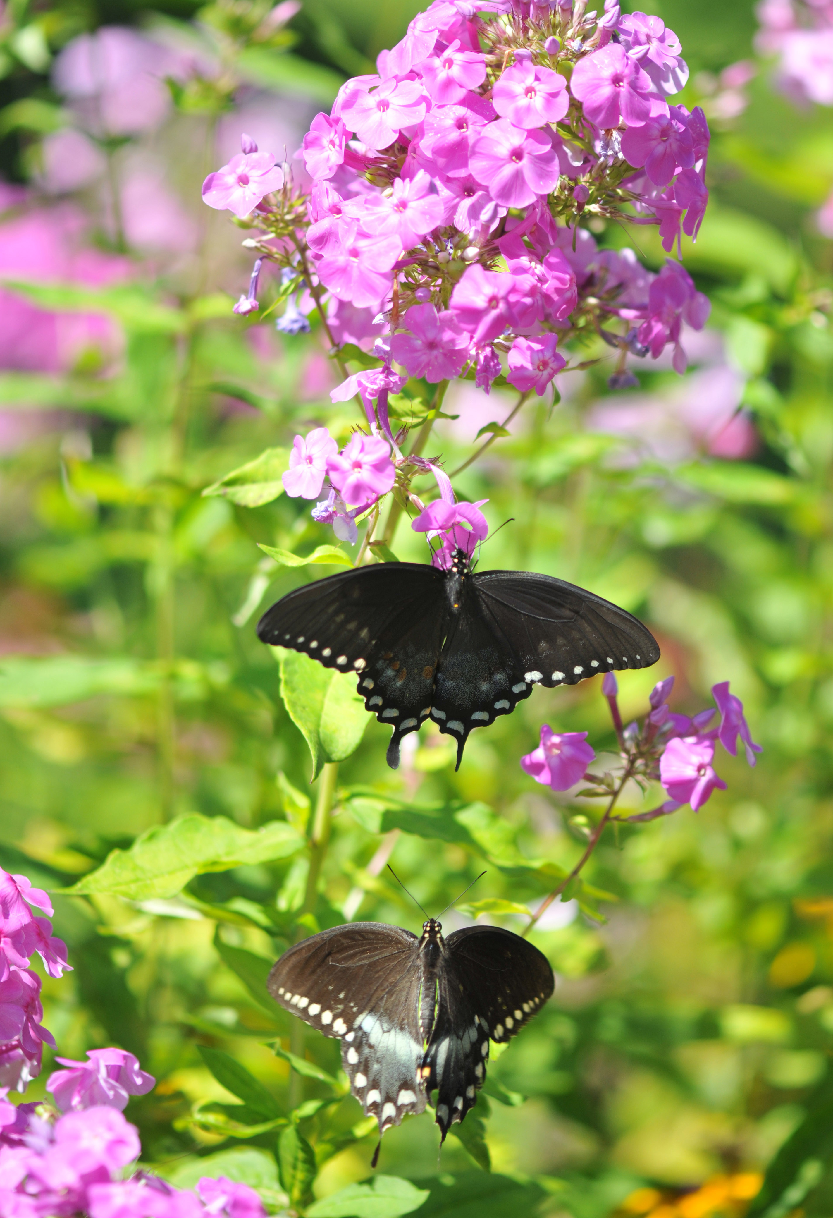 I had some luck a couple of days ago,  two Spicebush Swallowtails (Papilio troilus) took their time in courtship, slipping from flower to flower.  Wherever the female flew to, the male followed close behind.  It’s reminded me of the courtship ritual in many period films….very graceful.