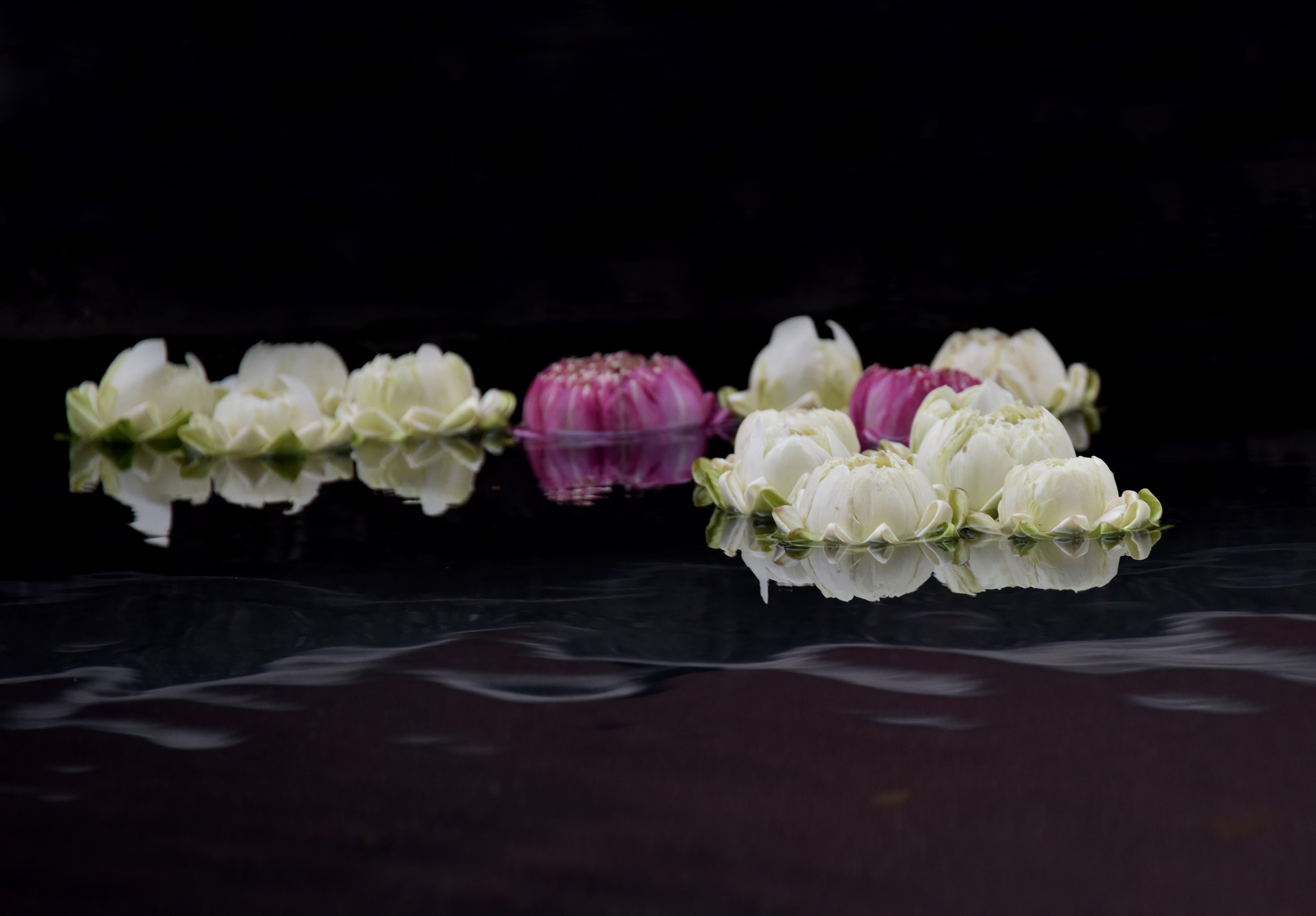 Lotus, Jasmine, Marigold, Plumeria and Orchid seem to be common offering flowers in Asia. The flowers in general represent prosperity and abundance. The water represents peace and abundance. Whether prosperity and abundance materialize or not is anyone’s guess, but watching lotus offerings floating slowly down the stream, circling one another and stopping at the edge of the reflecting pool was very peaceful.