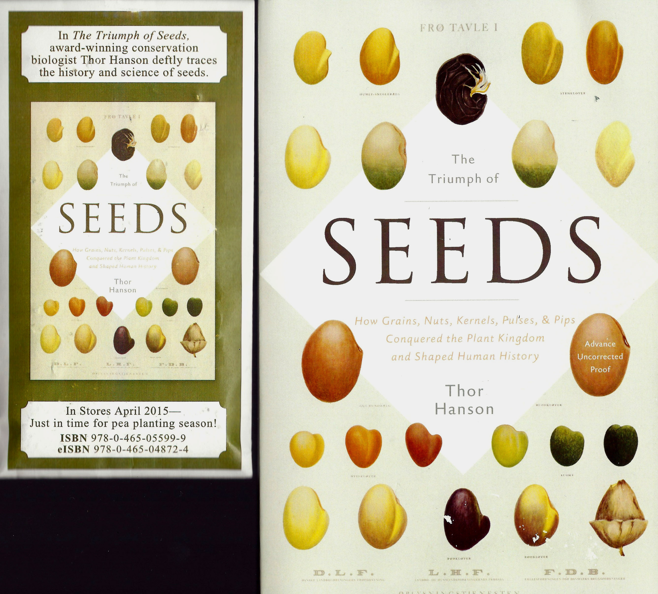 My friend, Andy, has given me an advance copy of The Triumph of Seeds: How Grains, Nuts, Kernels, Pulses, & Pips Conquered the Plant Kingdom and Shaped Human History by Thor Hanson.  It comes with a package of pea seeds.  I’m not sure I will plant them since there is no indication that the seeds are organic.  The book is a fun read though.  I’ve learned a lot about chili pepper.  I’ve been growing a wide variety of chili peppers for years and just realized how little I know about their biology and evolution until I read this book.  I also learned that the coffee plant has developed a delicate caffeine balance to repel various types of insects and at the same time lures in pollinators that ‘lined up like morning commuters at their favorite espresso stand’.  It gave me the idea to try using coffee as a natural insecticide in my garden.  The book won’t be in stores until April though.