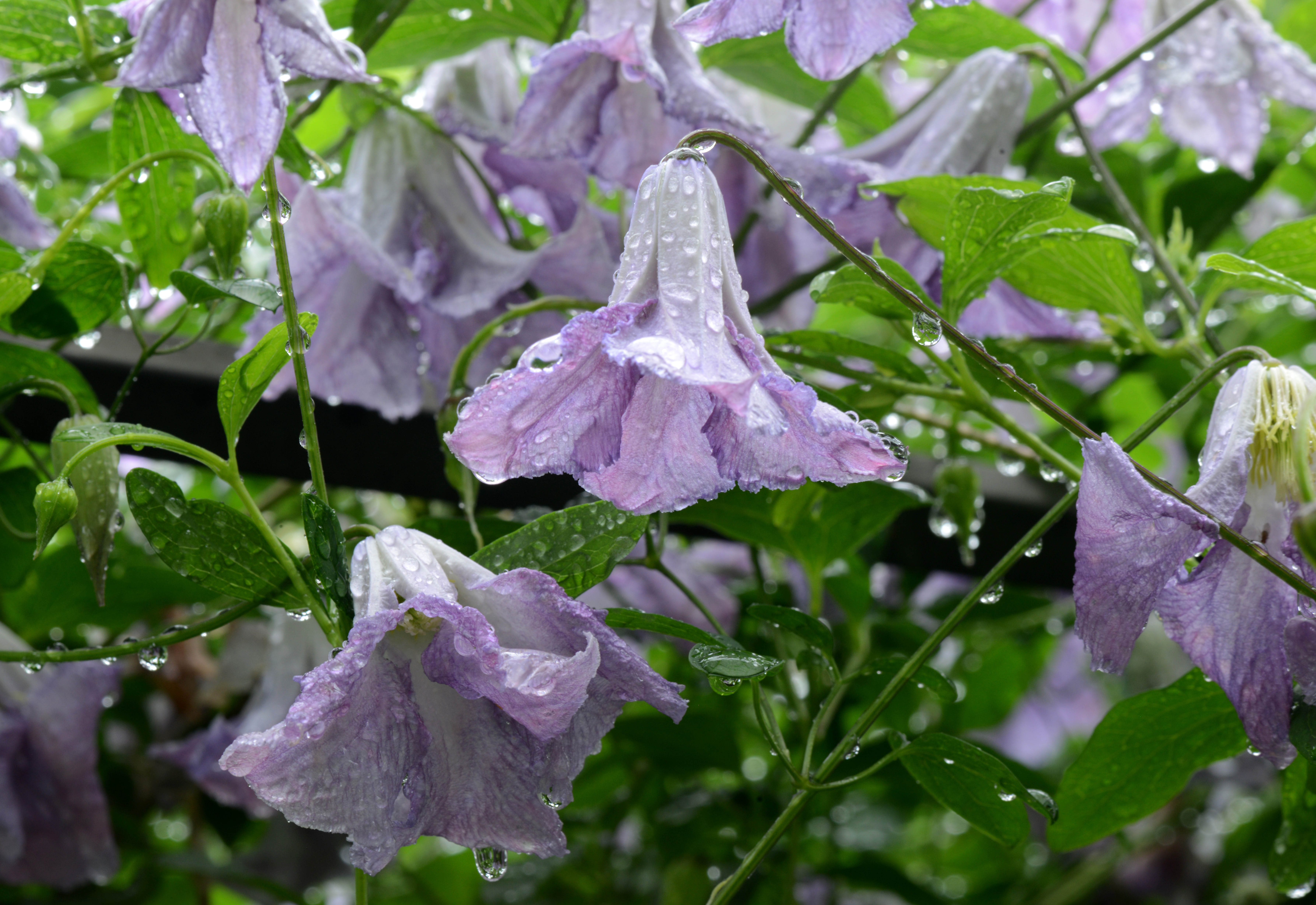 Tomatoes looked very unhappy being blown left and right and soaking wet. Other plants and flowers perked up every time the sun came out. They look so pretty with the water droplets hanging from their leaves and petals.