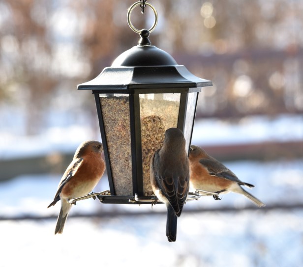 We have not yet had a heavy snow. We will see more of them once the ground is covered with snow and the lake is frozen over. I think they decided to stick around in winter because we have food, heated bath and warm places to stay. We pretty much rolled the red carpet out for our avian friends. The only exception is House Sparrows….for this bunch, it’s war.