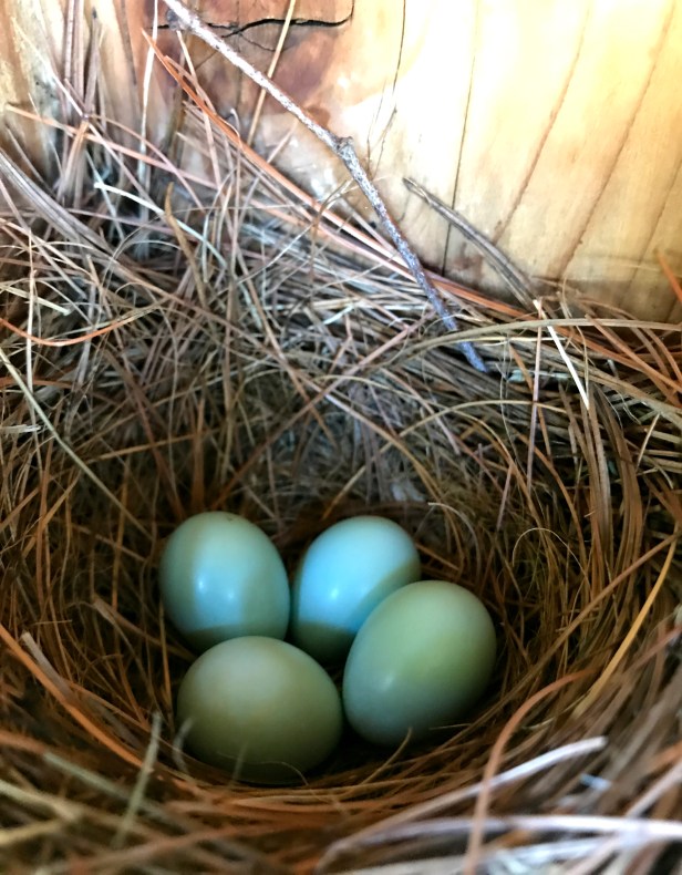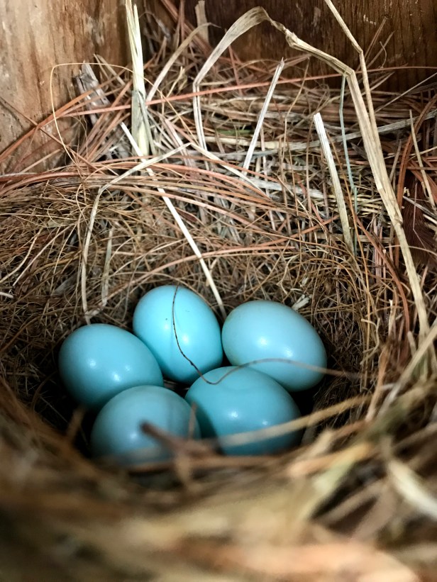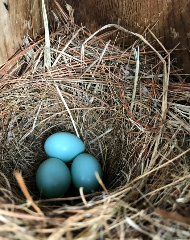 I’m not sure whose eggs are more blue: Eastern Bluebird, American Robin or Grey Catbird. They’re all beautiful shade of blue.