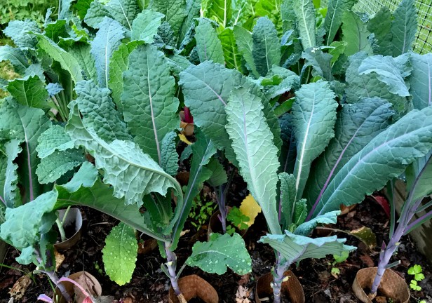 I also started varieties of kale and Swiss chard this week. By the time the last frost date comes, hopefully in mid April, they all should be ready to settle in to the garden. We agreed that the ‘Dazzling Blue’ kale we tried last year is worth growing again. If you like ‘Toscano’ or ‘Nero Di Toscana’, you will probably like this kale. It has similar leaves but with purplish/pink midribs and I find it’s a little sweeter.