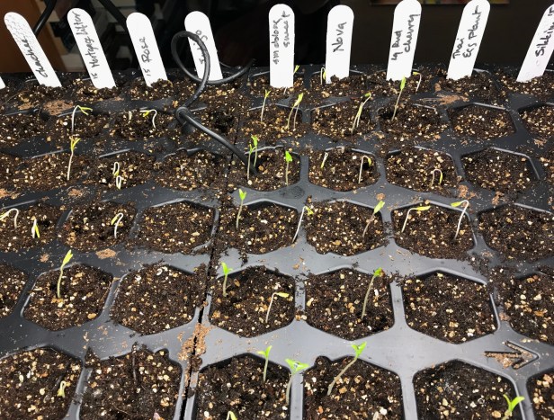 We’ve been bombarded with snow storms every week for the last three weeks and still have plenty of snow on the ground as a result. The temperature dropped back to winter levels again after a warm stretch in February. But it’s time to start germinating seeds for a new season, especially those that need more time to grow, bear fruit and ripen. I started our tomato, pepper and eggplant seedlings last week. The tomatoes have already sprouted up. Chili peppers will need a little bit more time to sprout.