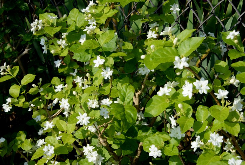 I let the flowers bloom on the plants if we plan to sit outside in the evening so we can enjoy their fragrance. I pick the flowers and keep them in the house, especially in the bedroom since the fragrance has a calming effect.  I also put them in water to infuse their scent into it.  Cold jasmine water is very soothing for a hot summer day.