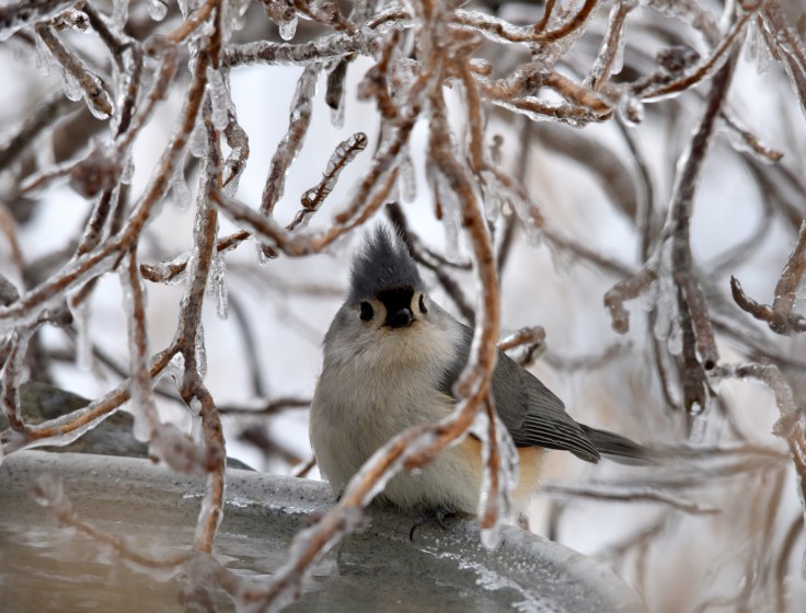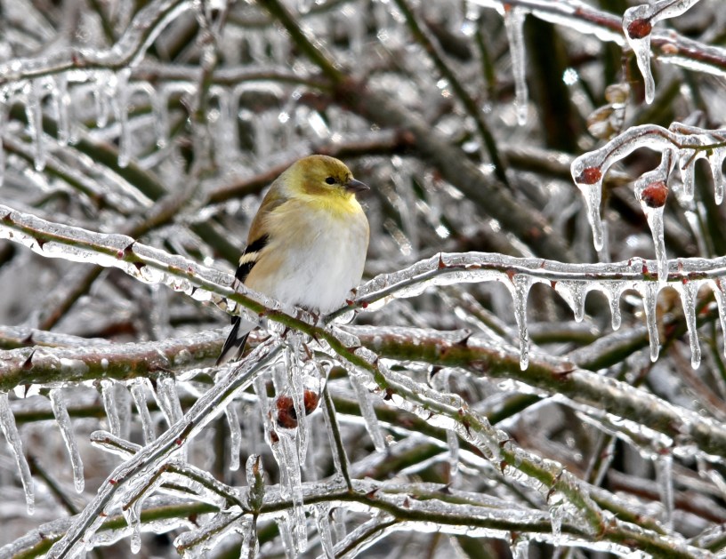 We have a symbiotic relationship with the birds in our garden. Aside from serenading us with their beautiful songs, they help rid us of insects during growing season. We in turn provide food, water and shelter for them in winter. We left brush piles and bird boxes up for them to take refuge in. Weather conditions like this weekend are crucial for us in expressing our gratitude so there will be more of them visiting our garden next year.